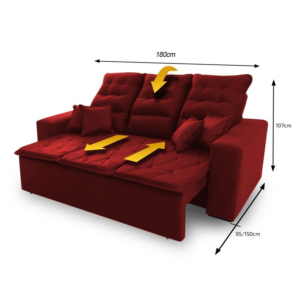 Sofá Retrátil/Reclinável Europa 1,80m Vermelho c/ Molas Espirais - King House