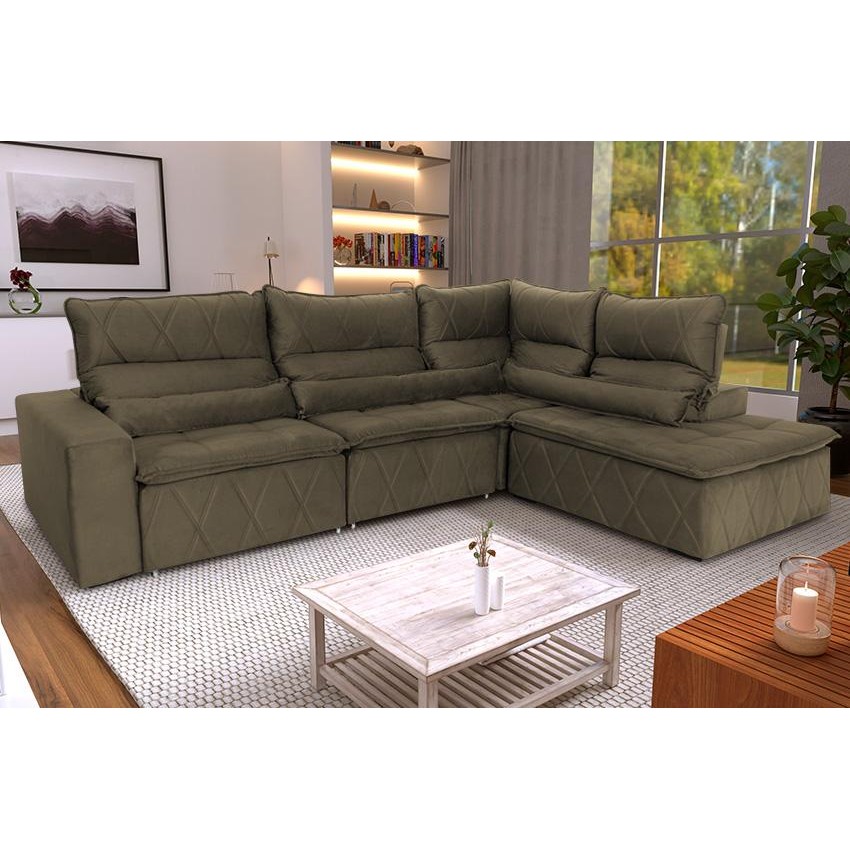 Sofá De Canto Amsterdam Tabaco Molas Retrátil Reclinável - King House