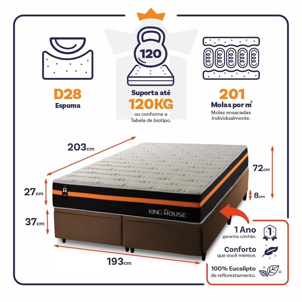 Conjunto Box Baú Sirius Preto 193x203x72 c/ Molas Ensacadas