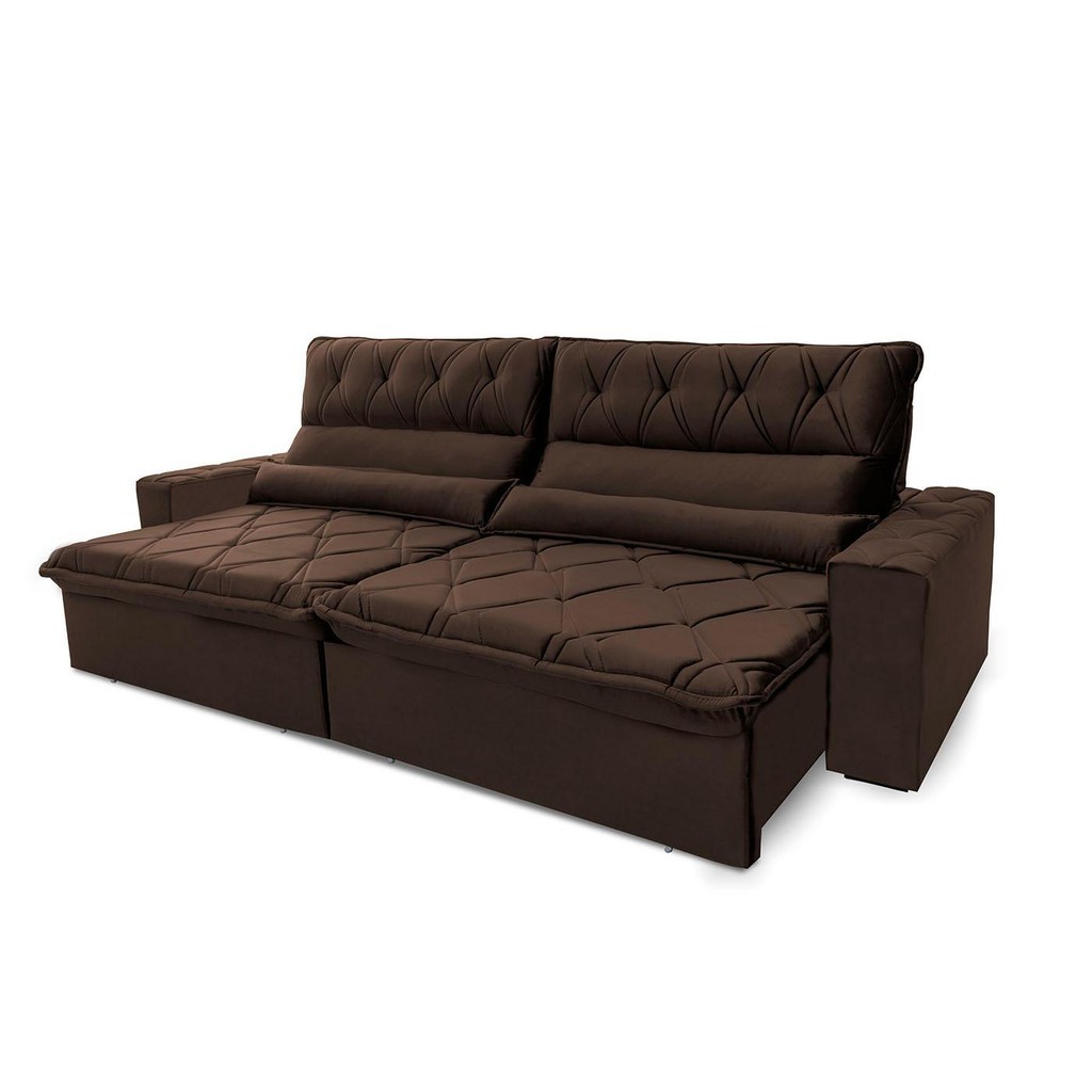 Sofá Retrátil Reclinável França 2,30m Suede Velut Marrom Molas no Assento - King House