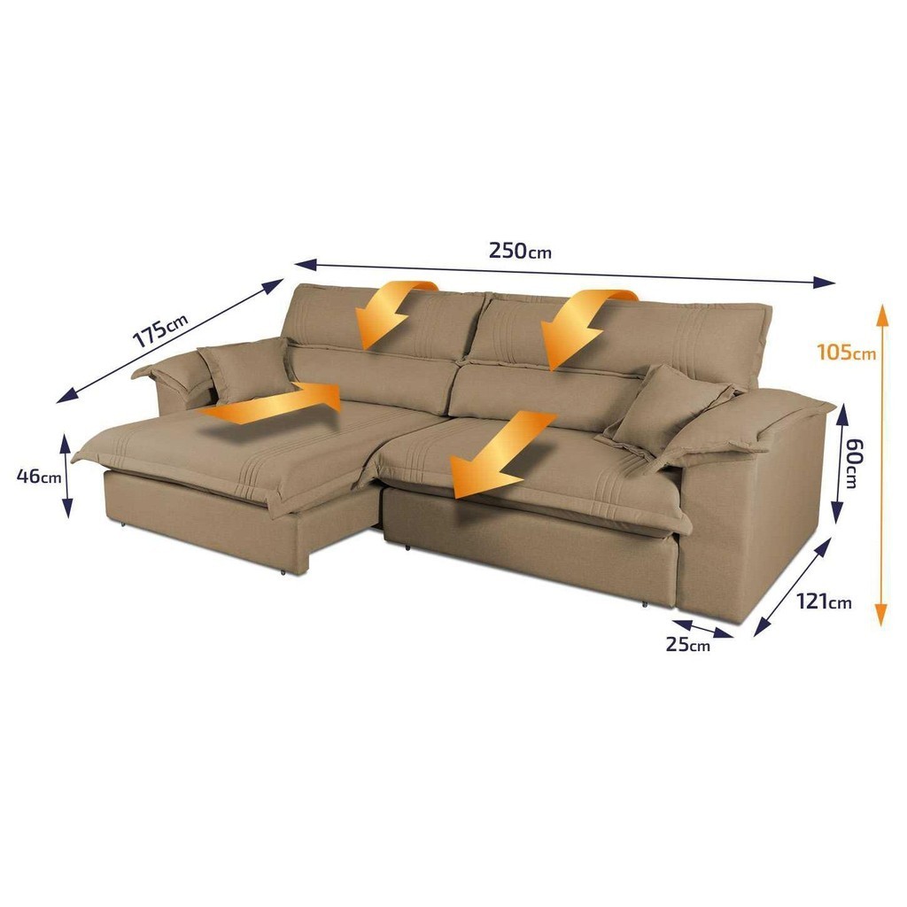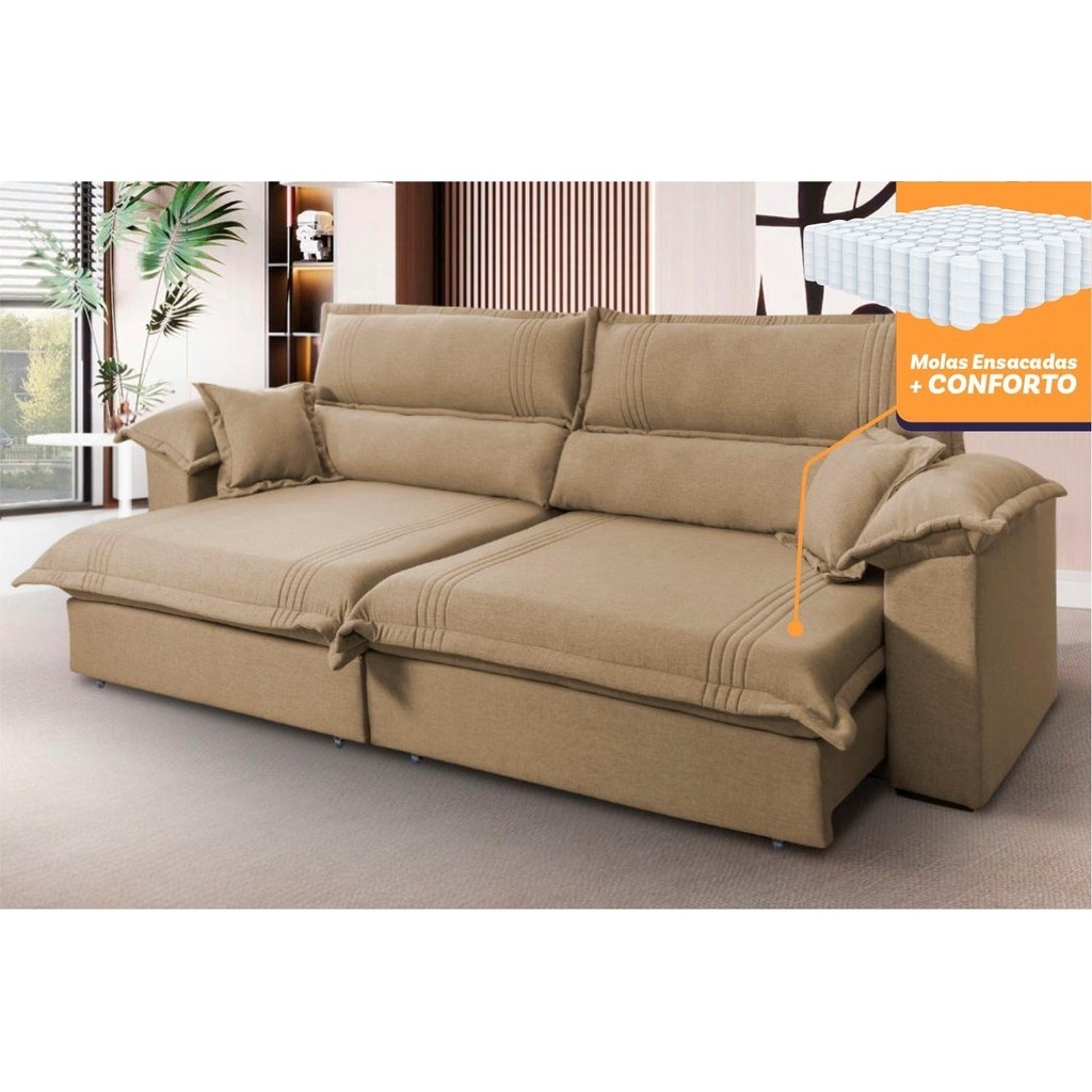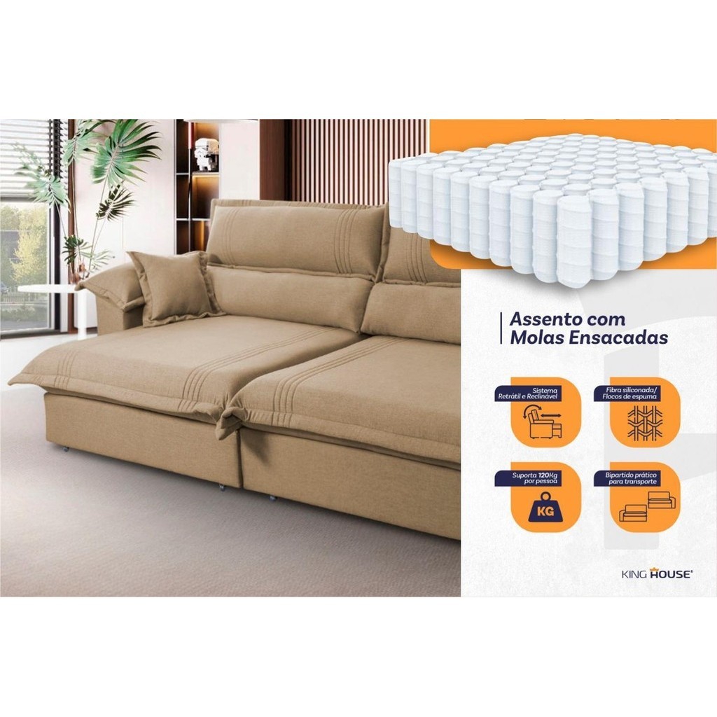 Sofá Retrátil Reclinável 2,50m Nivus Bege c/ Molas Ensacadas - King House