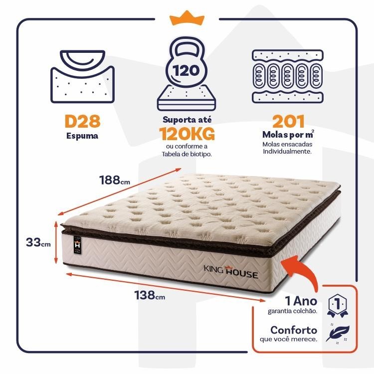Colchão c/ Molas Ensacadas Quartzo Casal 138x188x33 Marrom