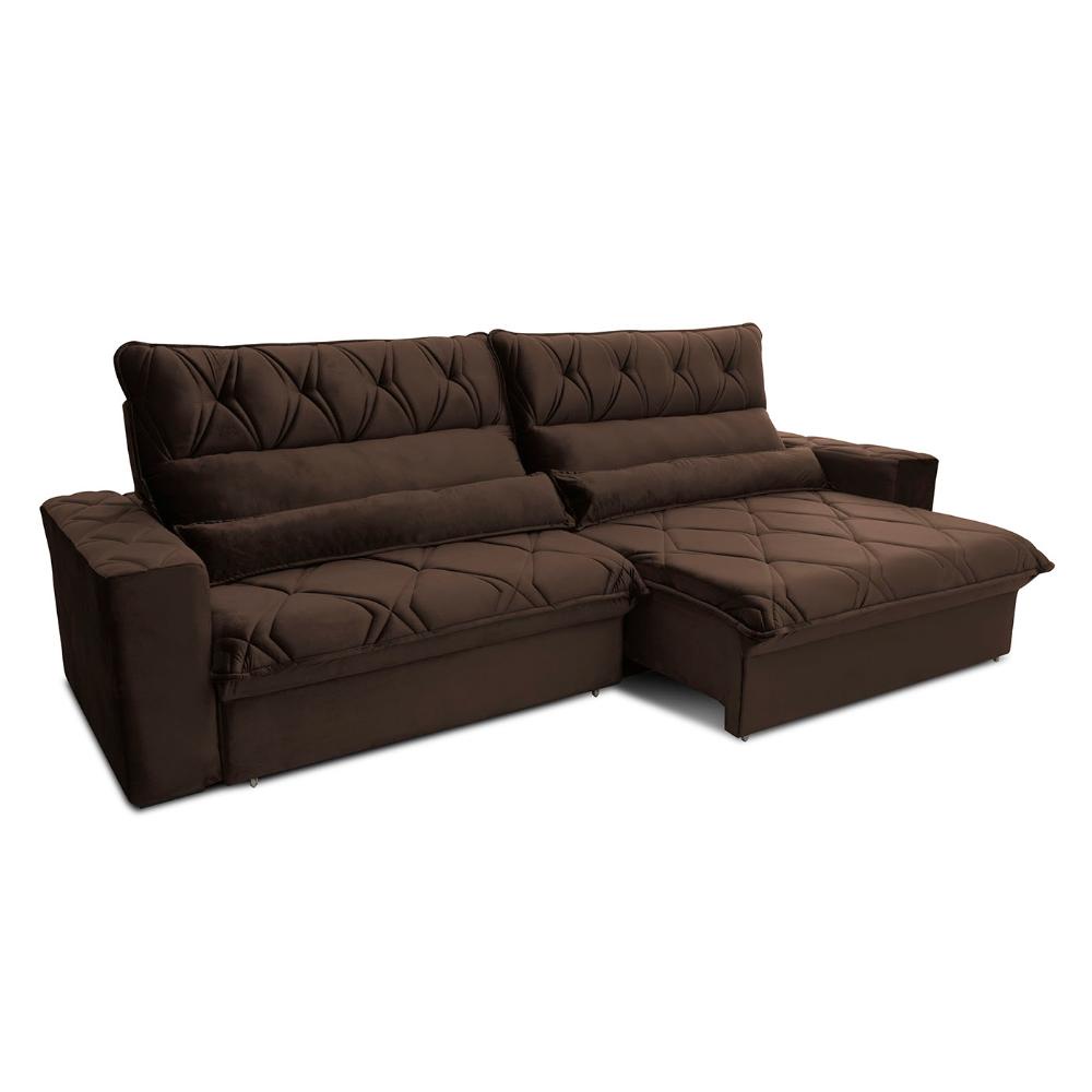 Sofá Retrátil Reclinável França 3,00m Suede Velut Marrom Molas no Assento - King House