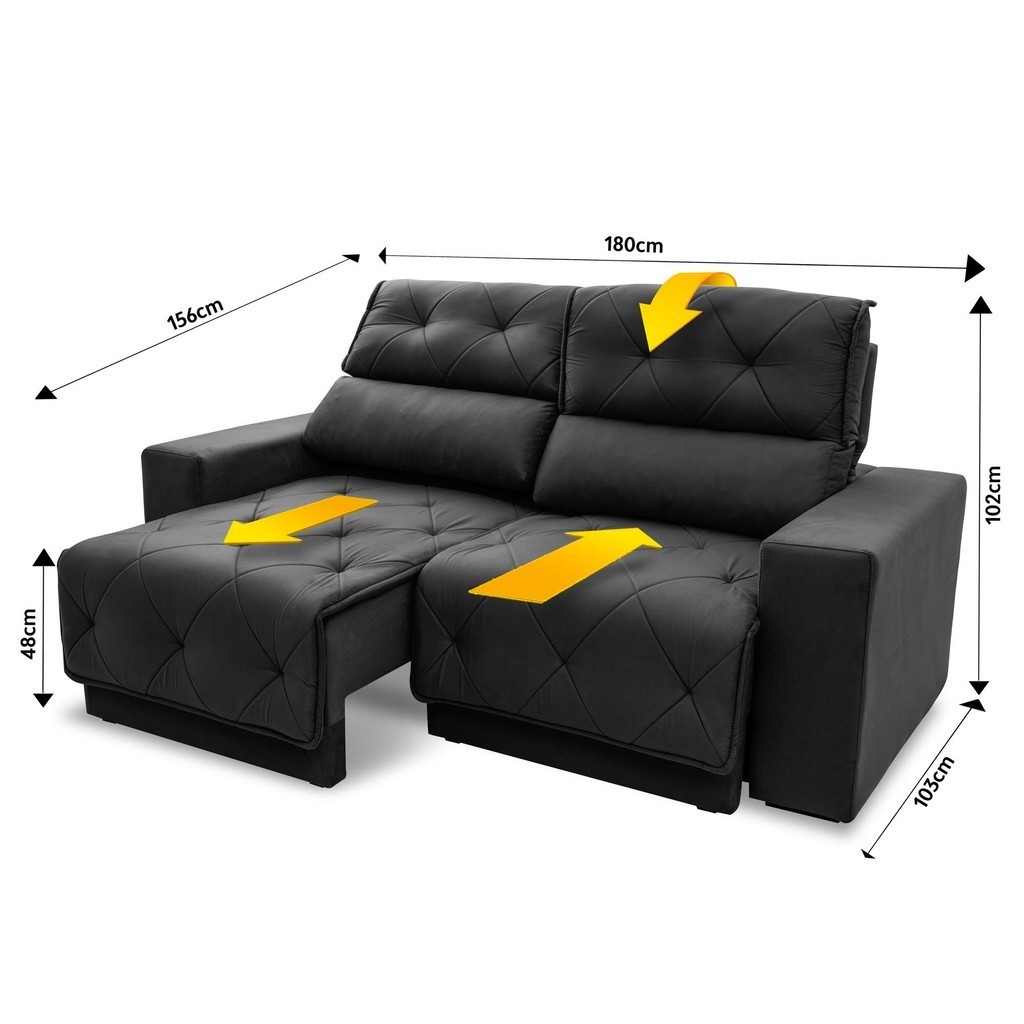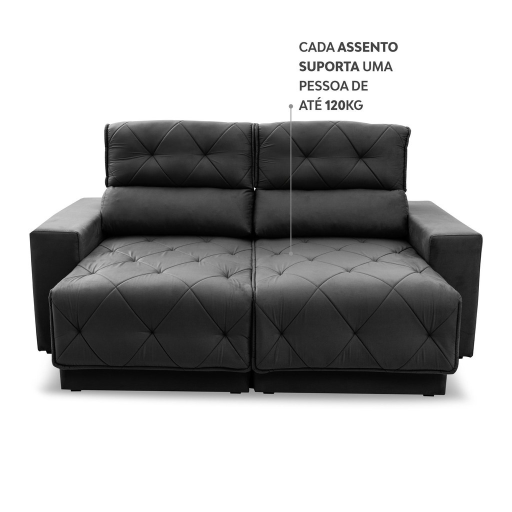 Sofá Retrátil Reclinável Belga 1,80m Suede Velut Cinza Molas no Assento