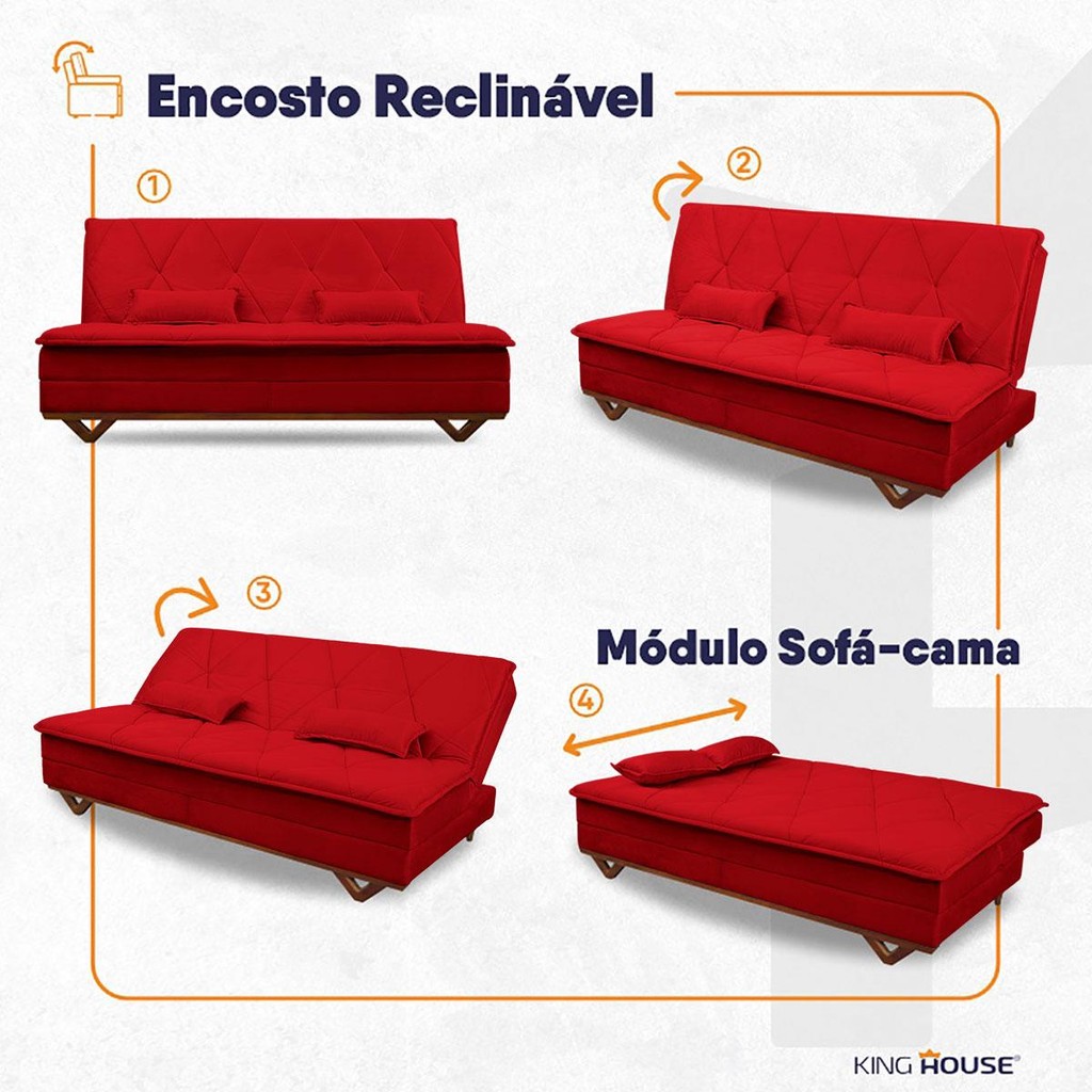 Sofá Cama Estoril 1,90m Vermelho Suede Velut - King House
