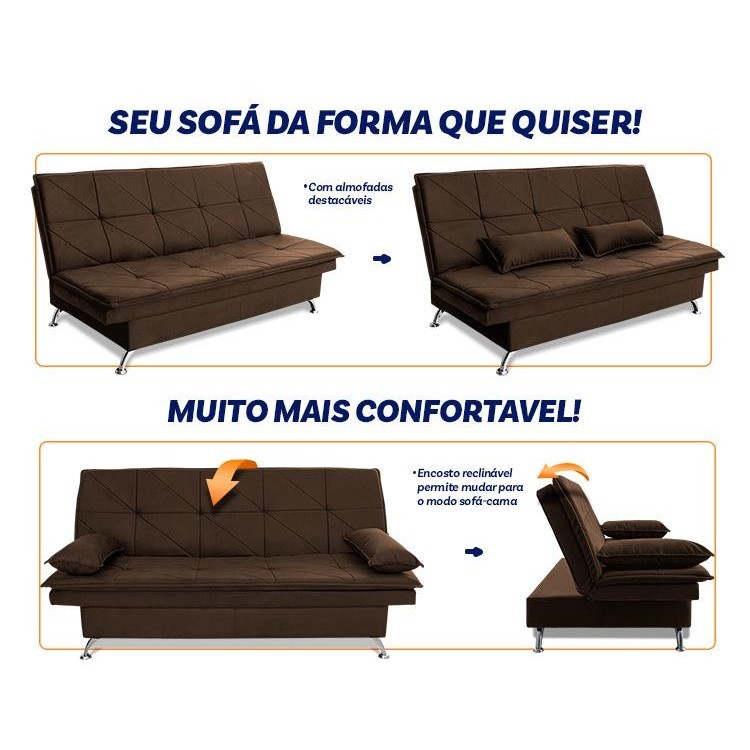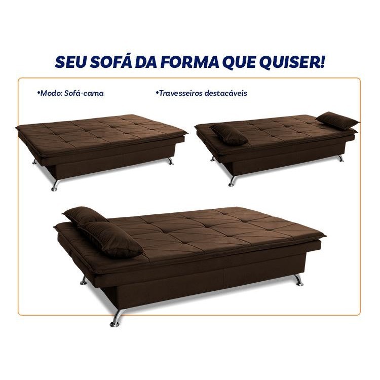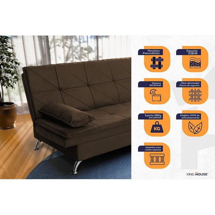 Sofá Cama Pérsia 3 Lugares Suede Velut Marrom - King House