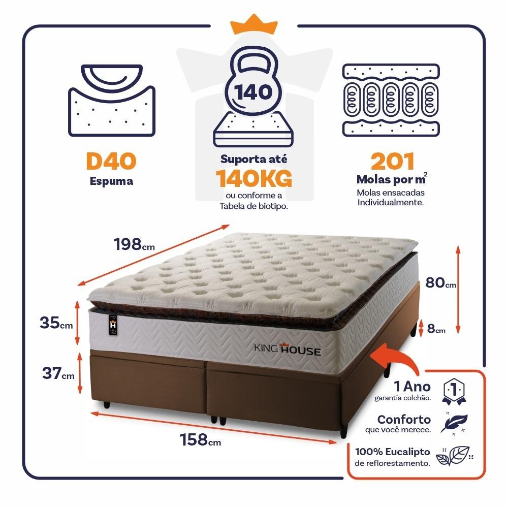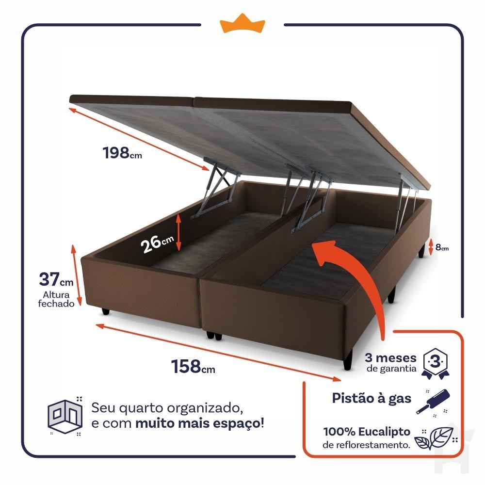 Conjunto Box Baú New York 158x198x80 c/ Molas Ensacadas