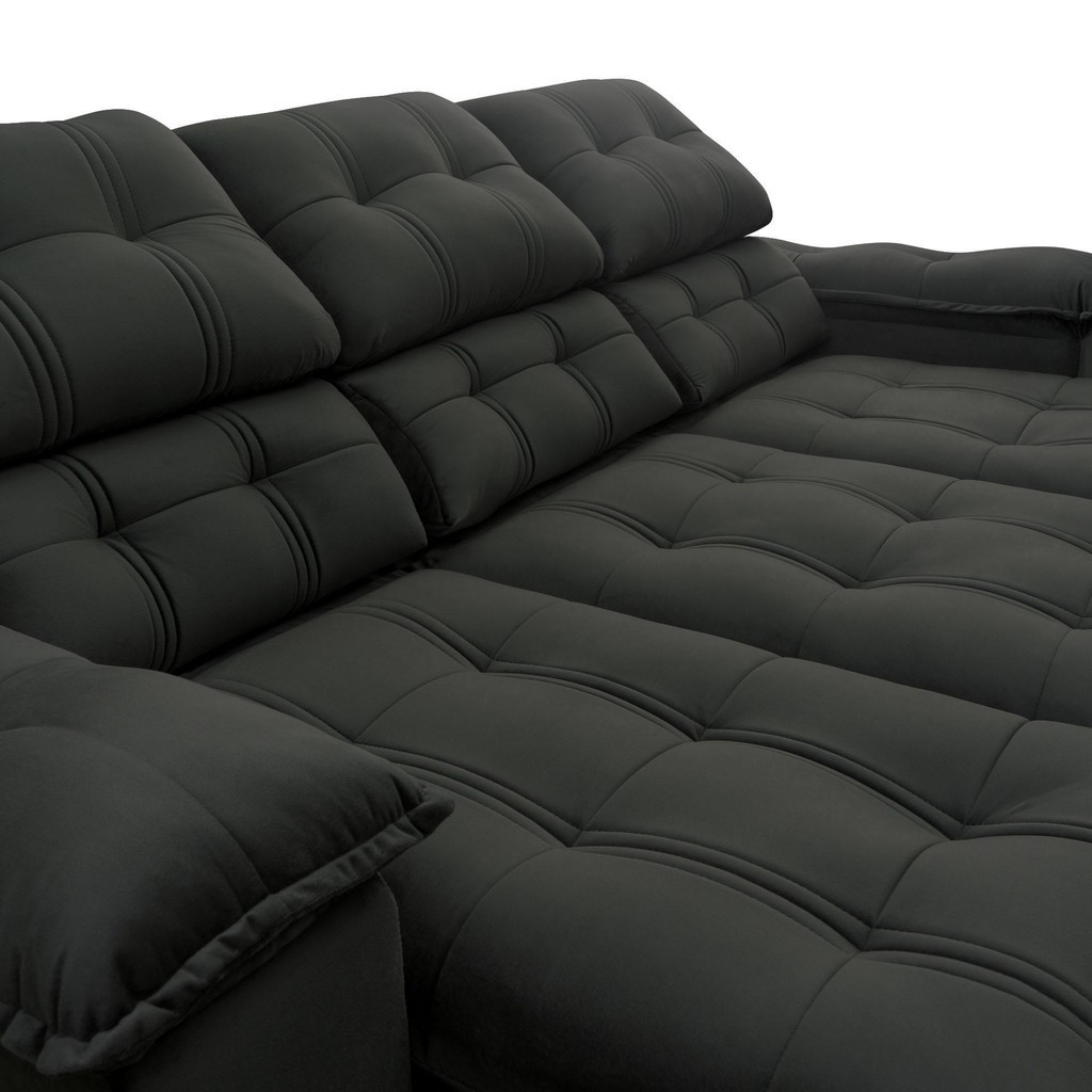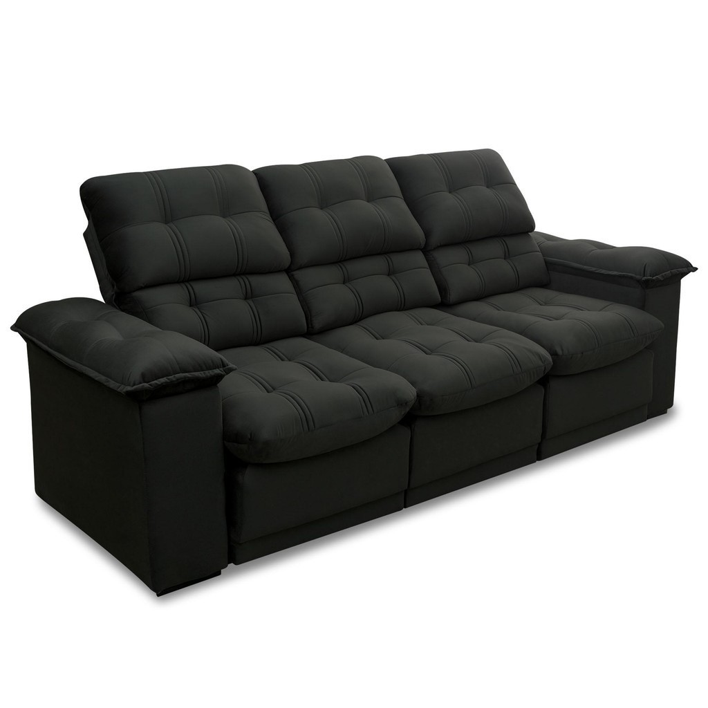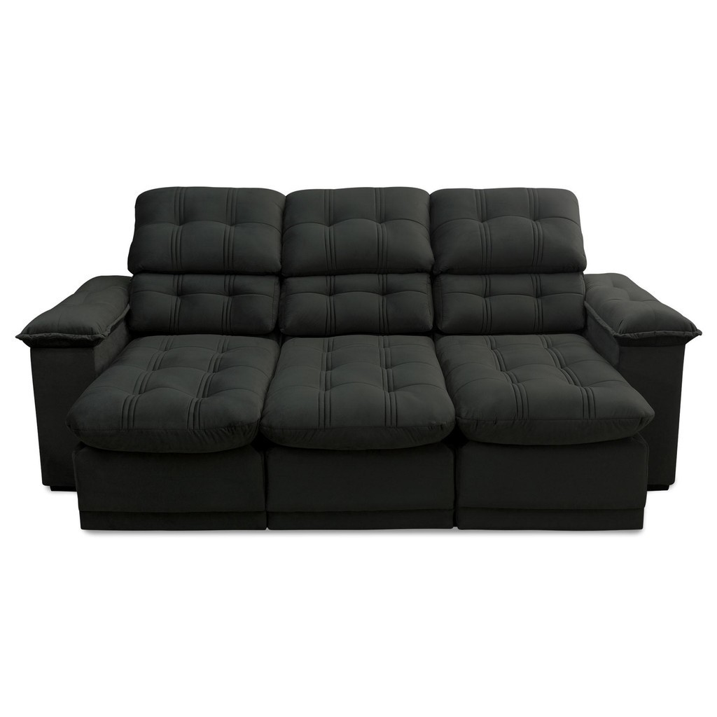 Sofá Retrátil Reclinável Atenas 2,30m Suede Velut Preto c/ Molas no Assento - King House