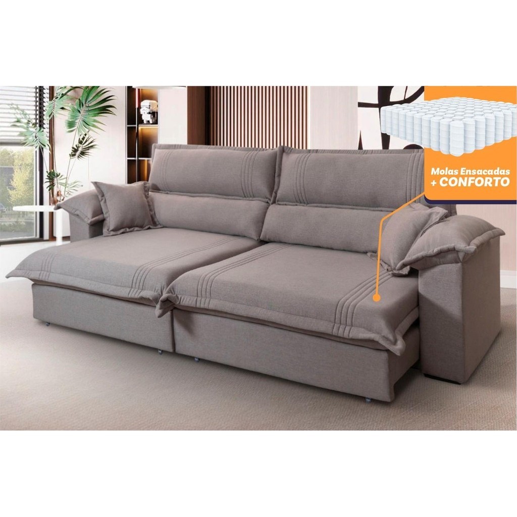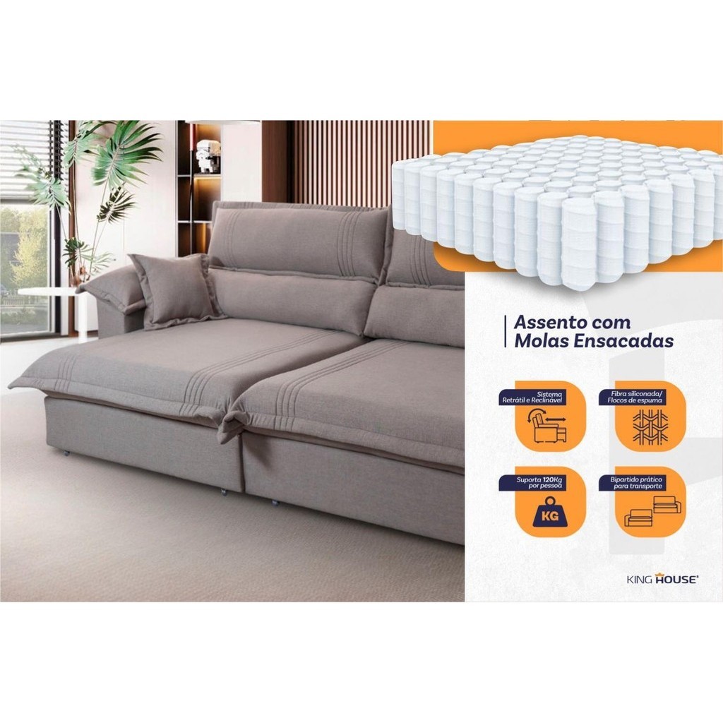 Sofá Retrátil Reclinável 3,00m Nivus Marrom c/ Molas Ensacadas - King House