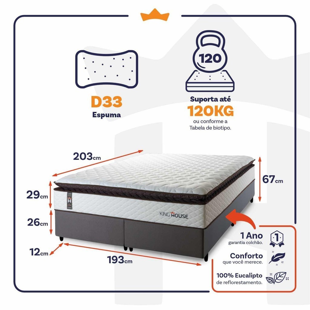 Conjunto Cama Box Espuma San Diego Branco King 193x203x67