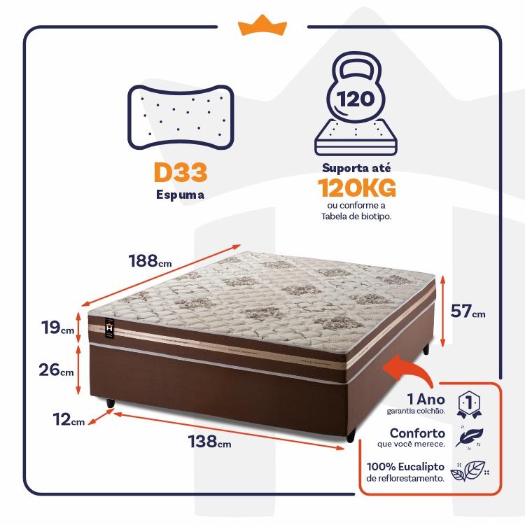 Conjunto Cama Box Espuma Espuma Chicago Marrom Casal 138x188x57