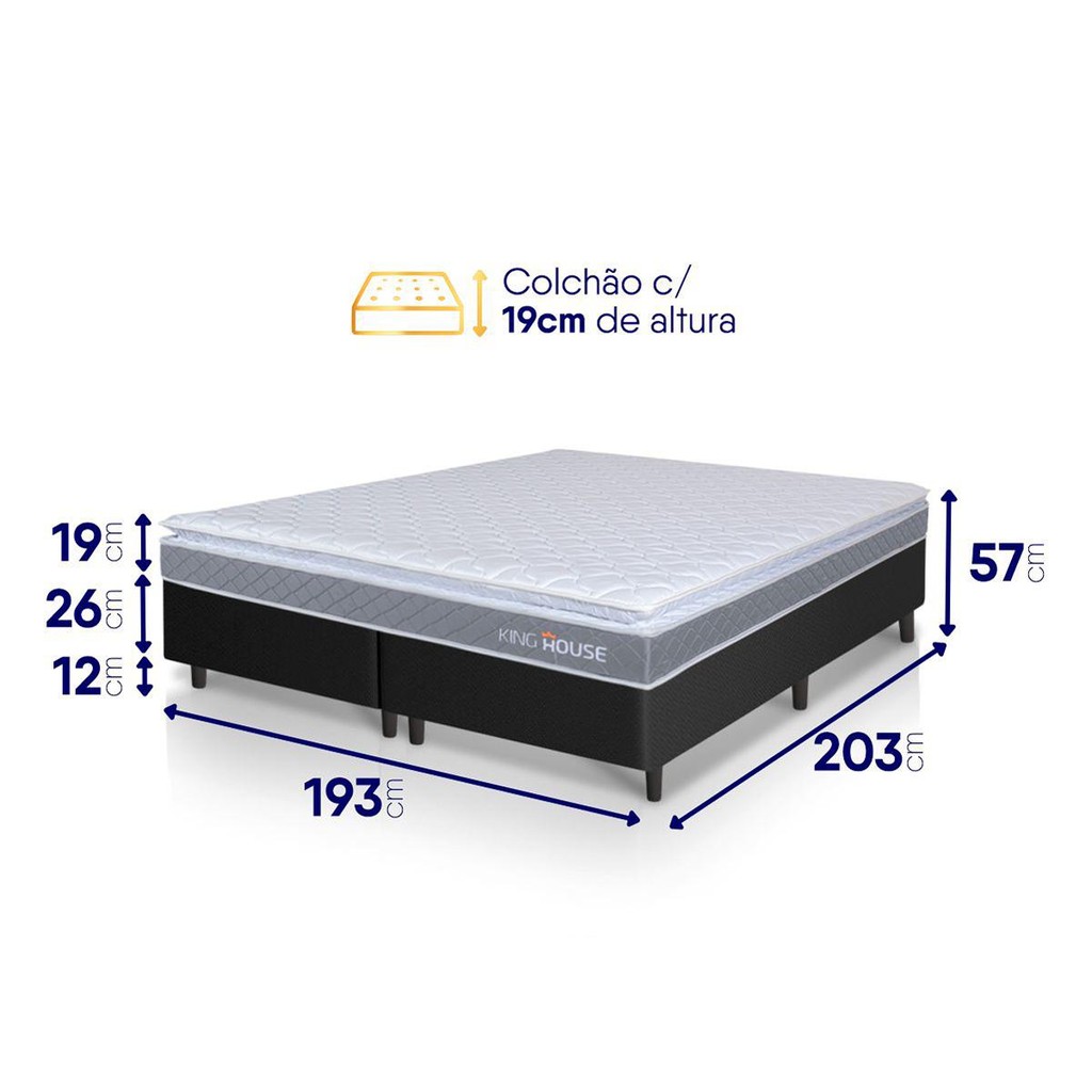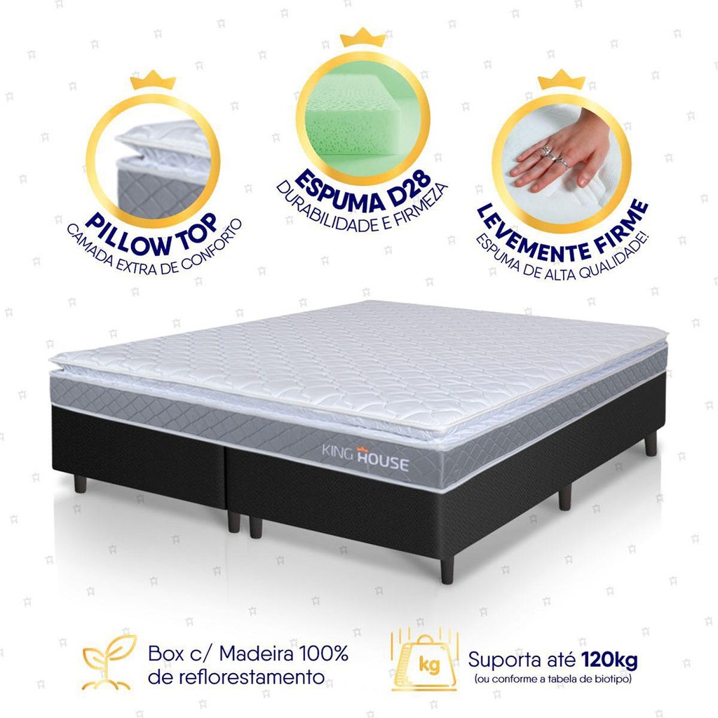 Conjunto Box Preto Durban Cinza Espuma D28 King 193x203x57 - King House