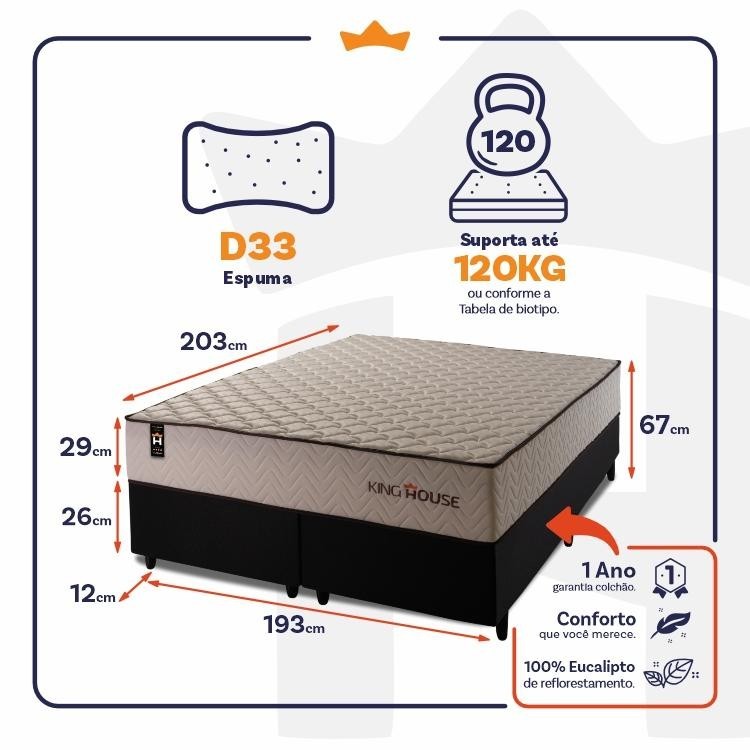 Conjunto Cama Box Espuma San Diego Bege King 193x203x67