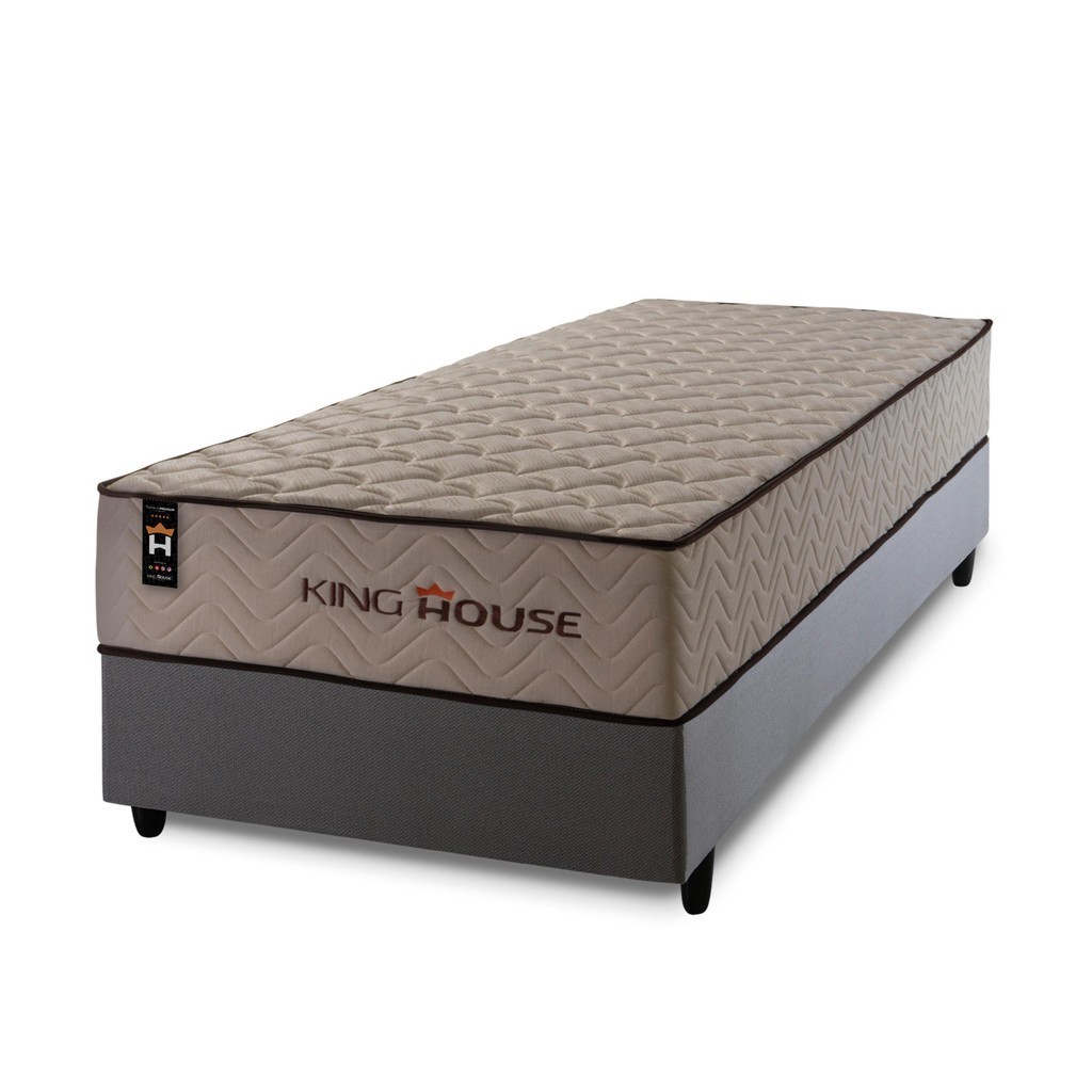 Conjunto Cama Box Espuma San Diego Bege Solteiro 88x188x67