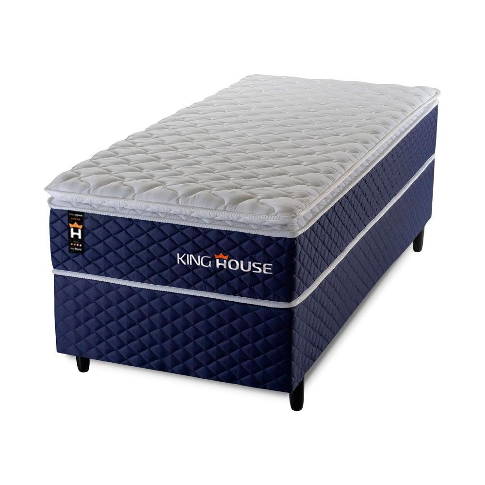 Conjunto Cama Box Solteiro Lagras 96x203x66 Azul c/ Molas Ensacadas