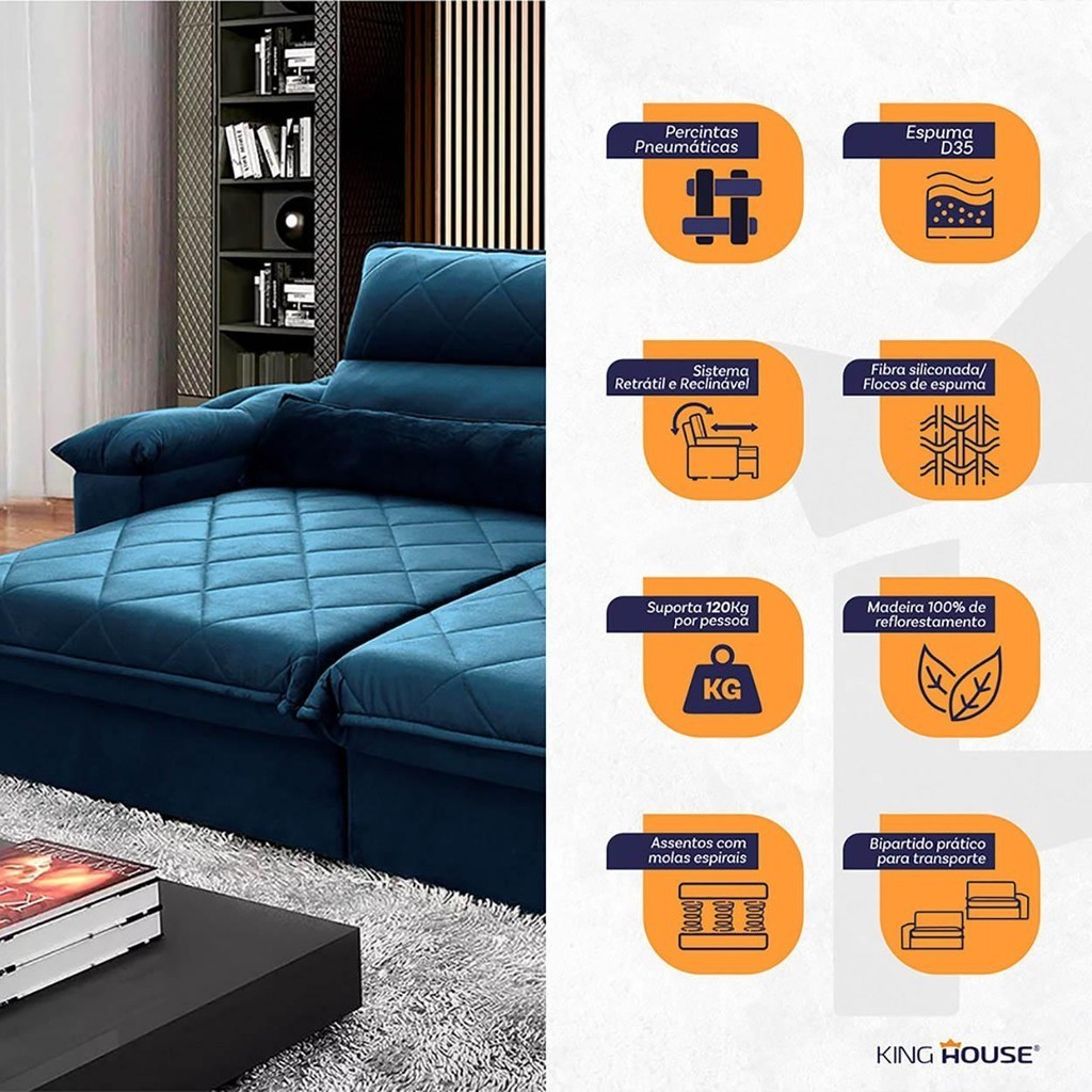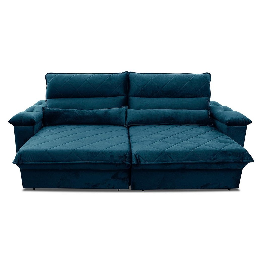 Sofá Retrátil Reclinável Grécia 2,30m Suede Velut Azul Marinho Molas no Assento - King House