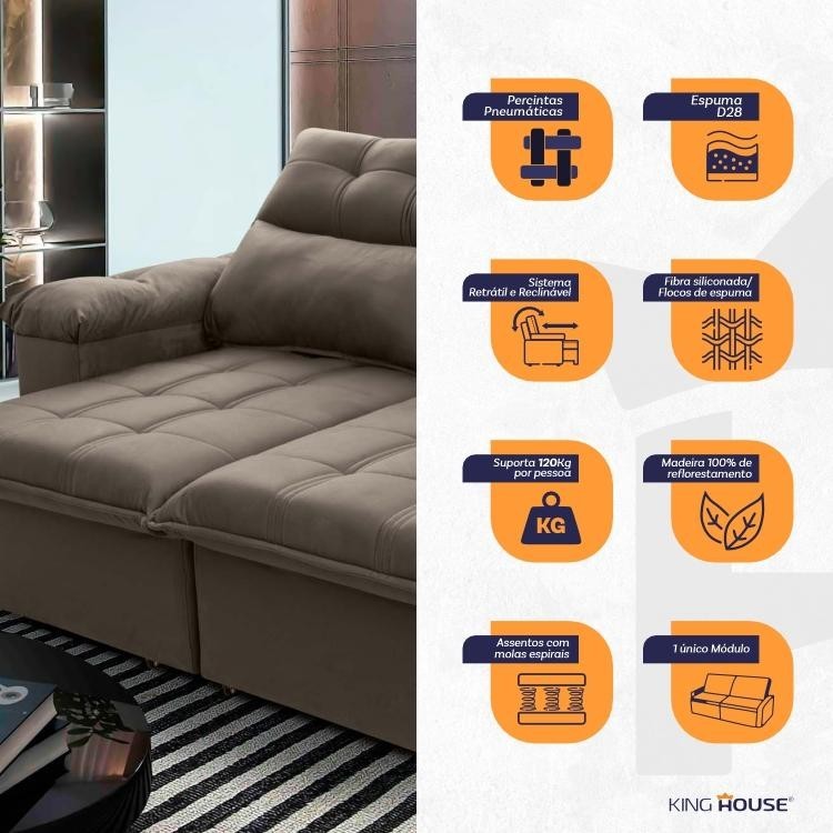 Sofá Retrátil Reclinável Verona 1,50m Suede Velut Tabaco Molas no Assento - King House