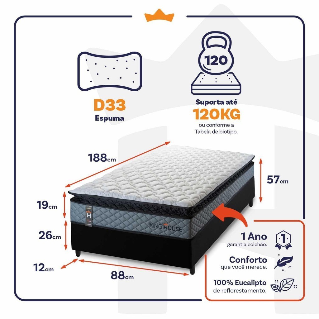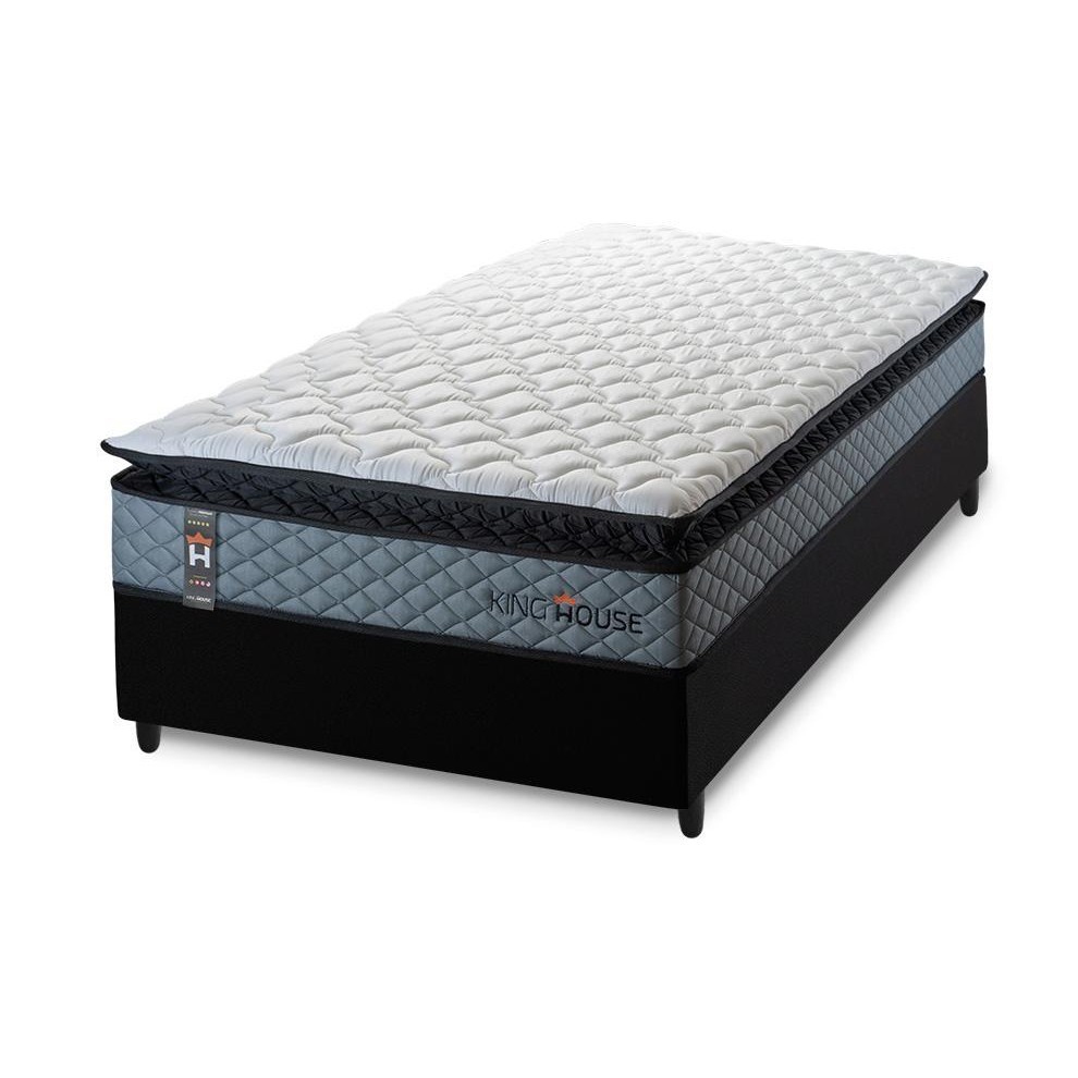 Conjunto Cama Box Espuma Chicago Cinza Solteiro 88x188x57