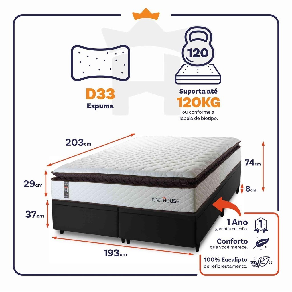 Conjunto Box Baú San Diego Branco 193x203x74 Espuma D33