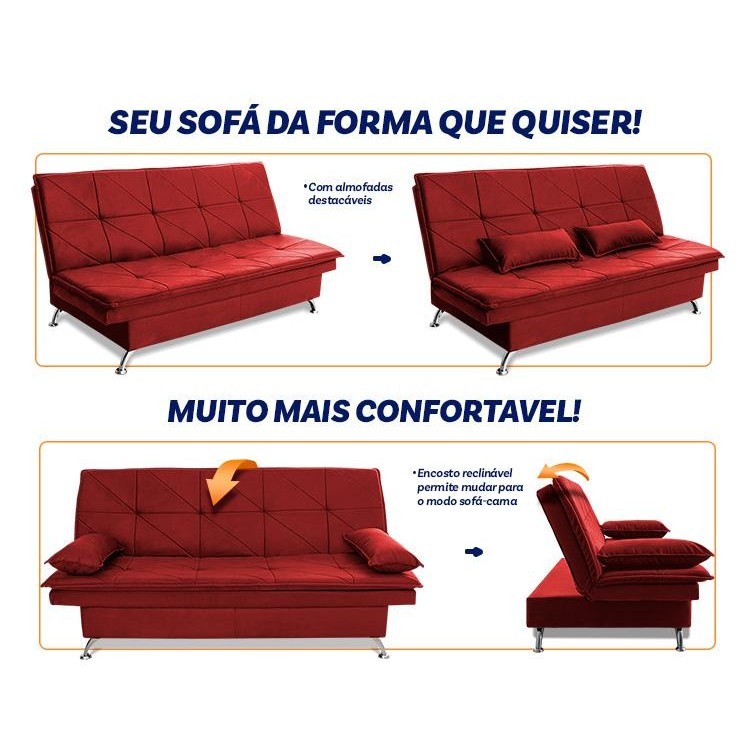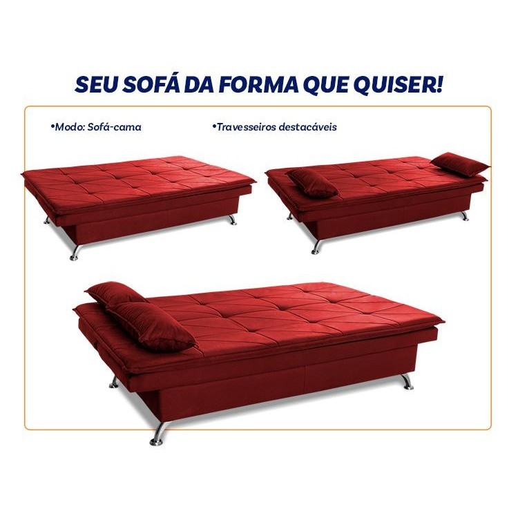 Sofá Cama Pérsia 3 Lugares Suede Velut Vermelho - King House
