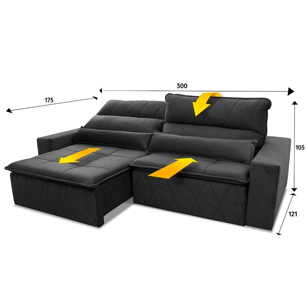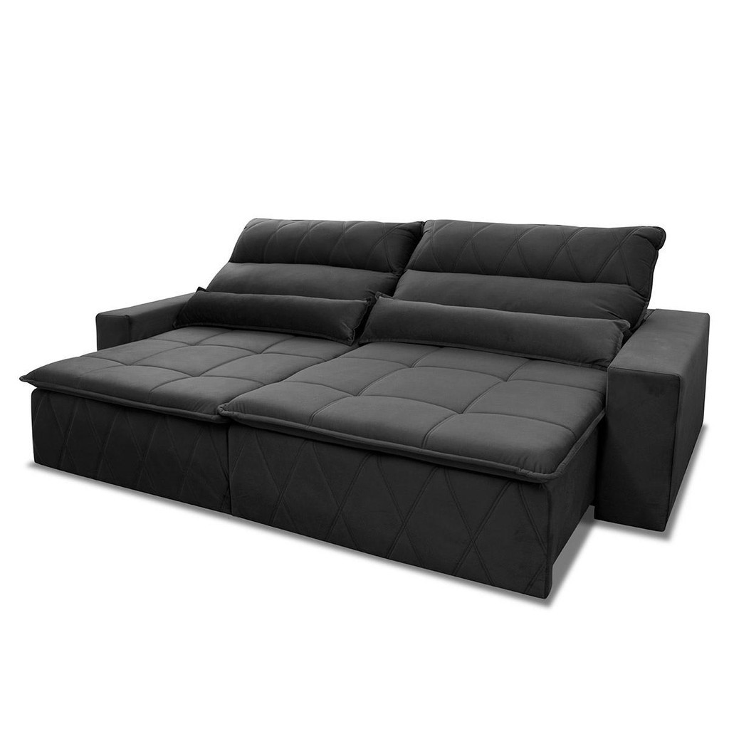 Sofá Retrátil Reclinável Amsterdam 3,00m Suede Velut Cinza Molas no Assento - King House