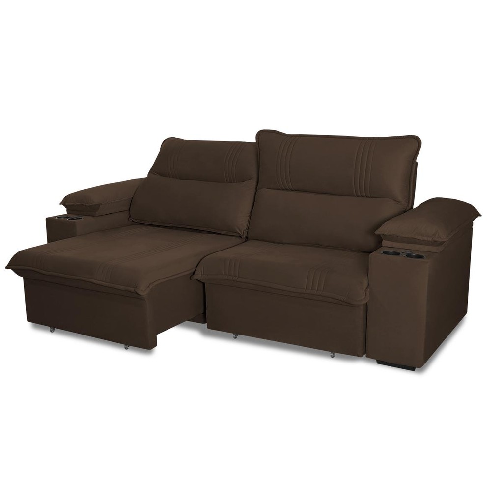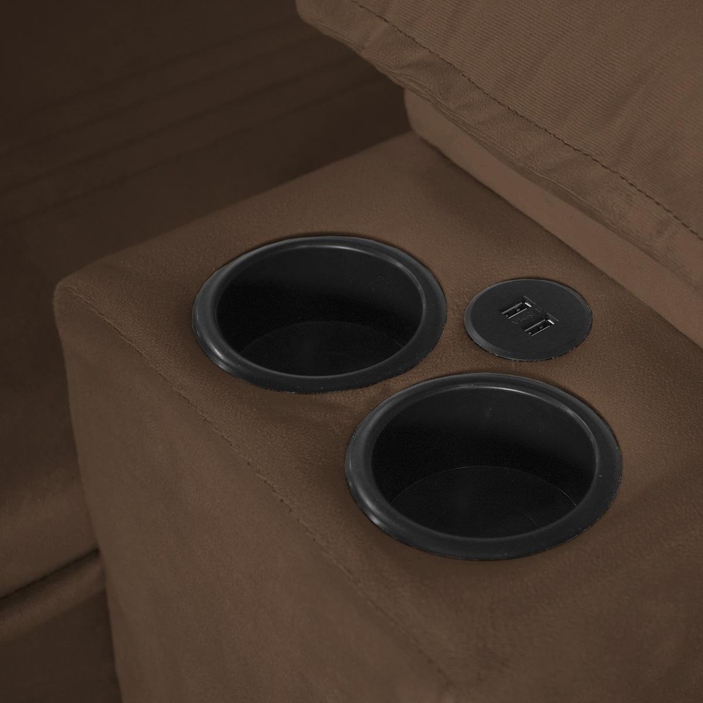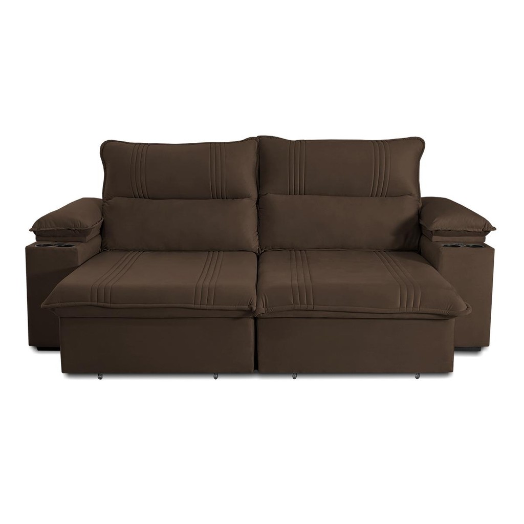 Sofá Retrátil Tesla 2,60m USB e Porta Copo Suede Marrom