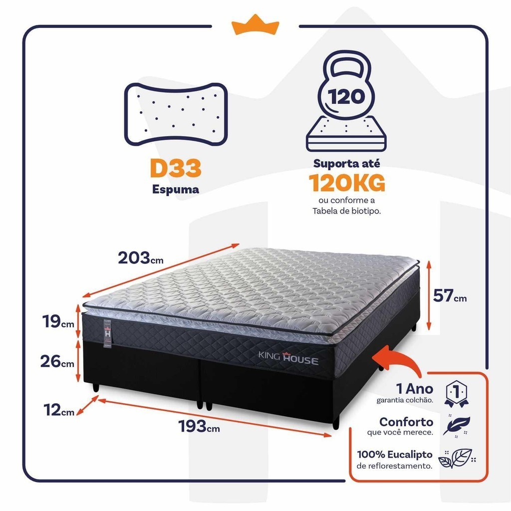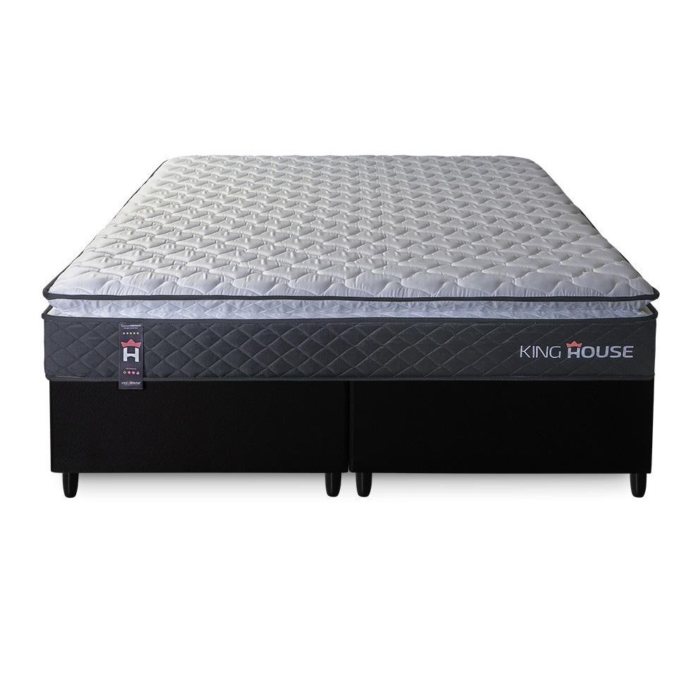 Conjunto Cama Box King Dakota Preto 193x203x57 Espuma D33