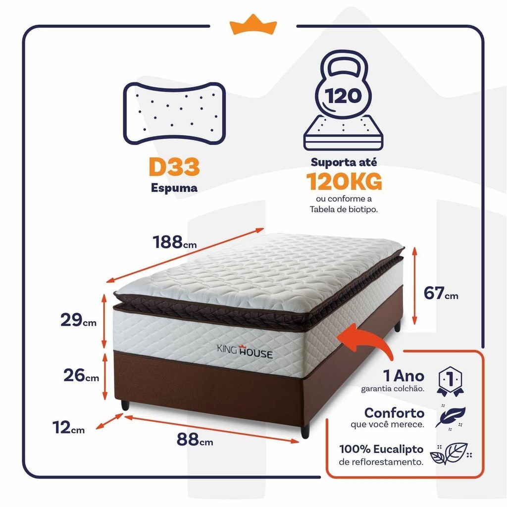 Conjunto Cama Box Espuma San Diego Branco Solteiro 88x188x67