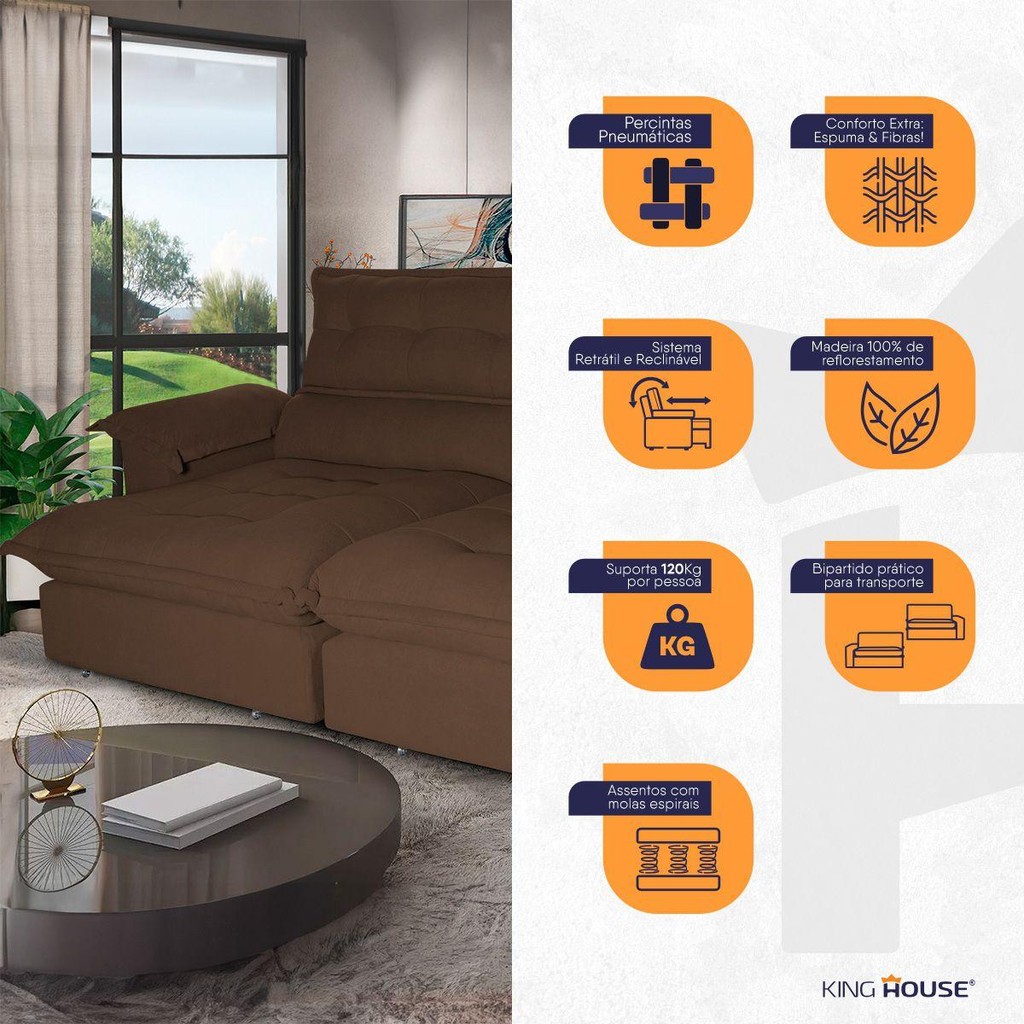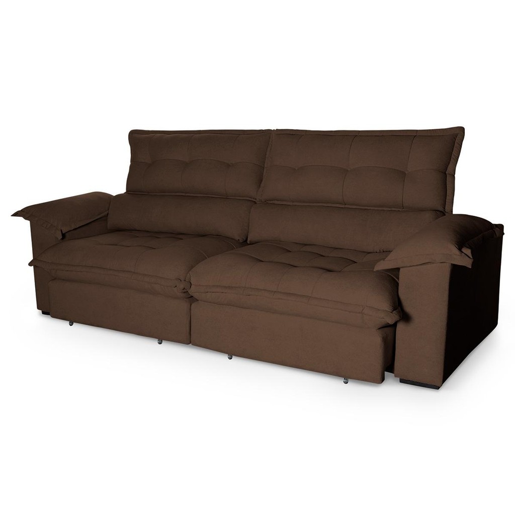 Sofá Retrátil Reclinável Aconchego 2,30m Bouclê Cafe