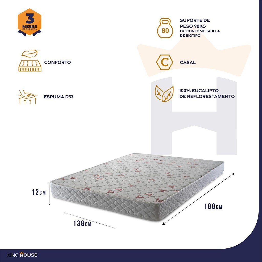 Colchão Casal Espuma D33 Valentine 138x188x14 Branco