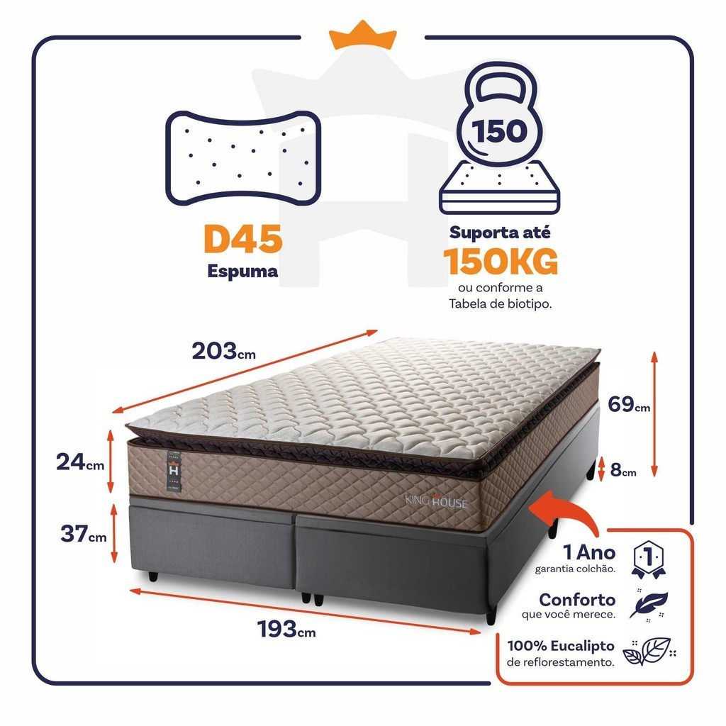 Conjunto Box Baú Atlanta Bege 193x203x69 Espuma D45