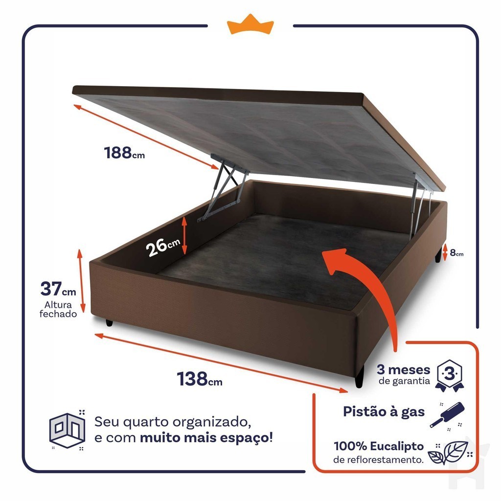 Conjunto Box Baú Casal Dakota Preto 138x188x64 Espuma D33