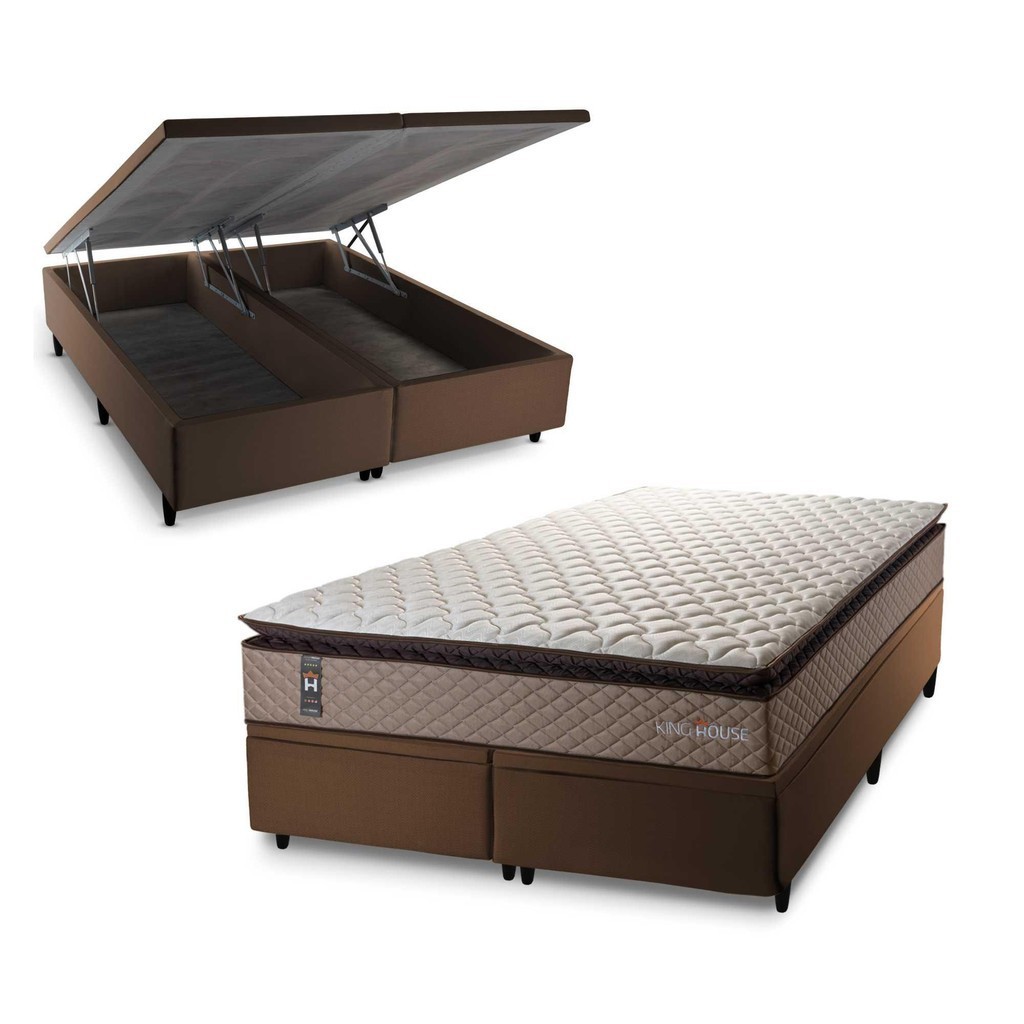 Conjunto Box Baú Atlanta Bege 193x203x69 Espuma D45