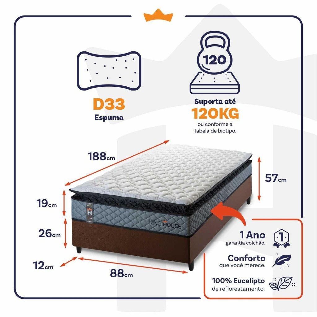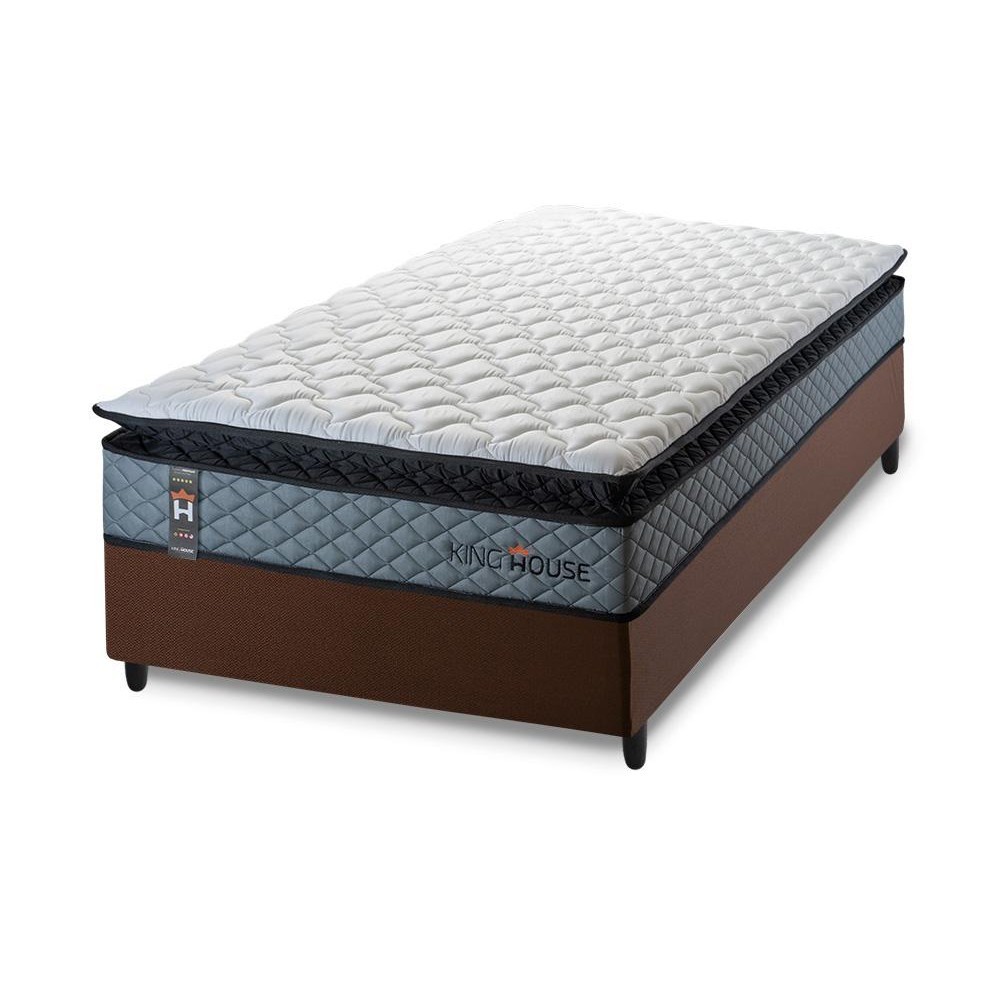 Conjunto Cama Box Espuma Chicago Cinza Solteiro 88x188x57