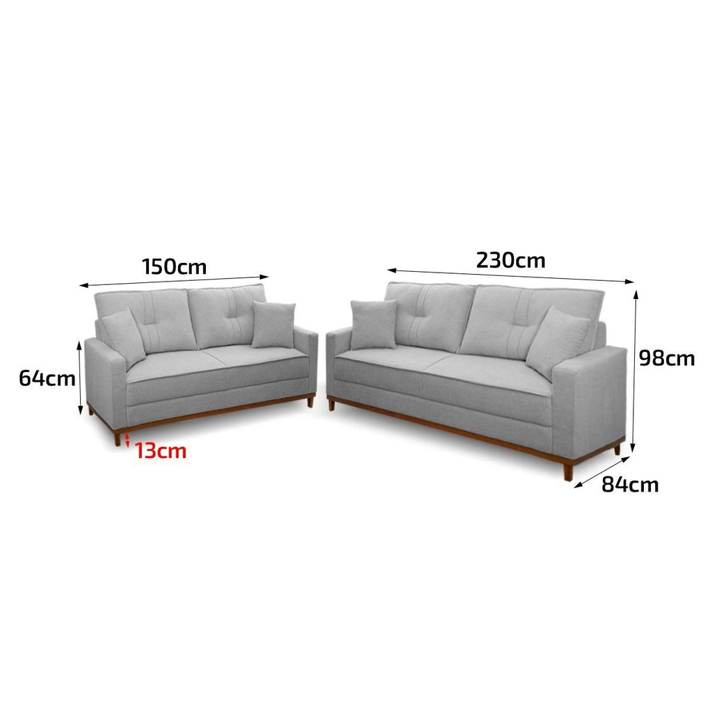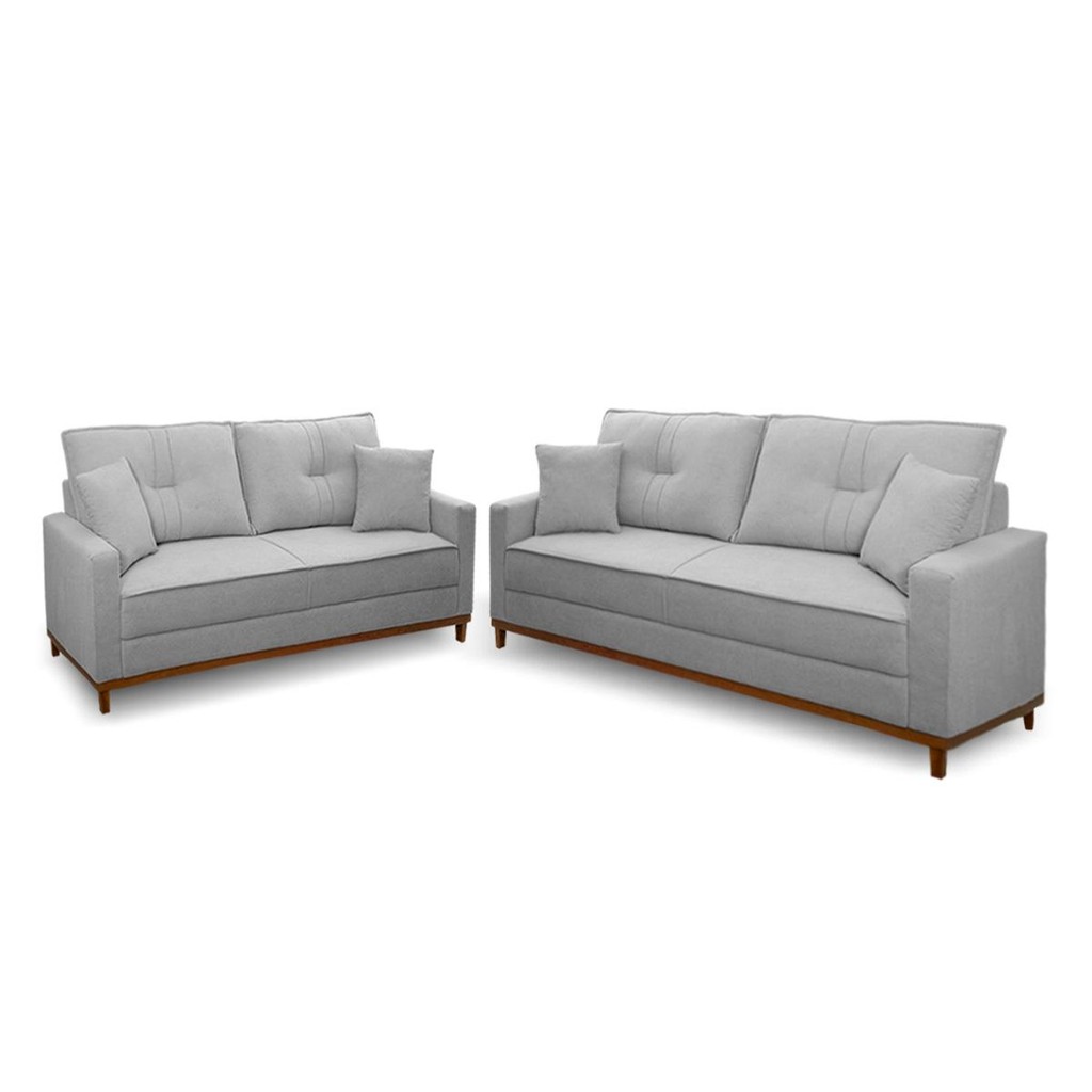 Conjunto Sofá Living 3 e 2 Malibu Bouclê Cinza 1,50/2,30m - King House