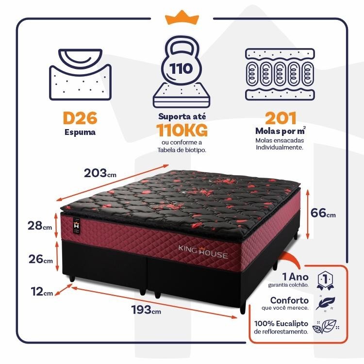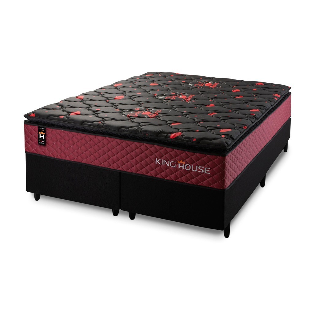 Conjunto Cama Box c/ Molas Ensacadas Toronto Vermelho King 193x203x66