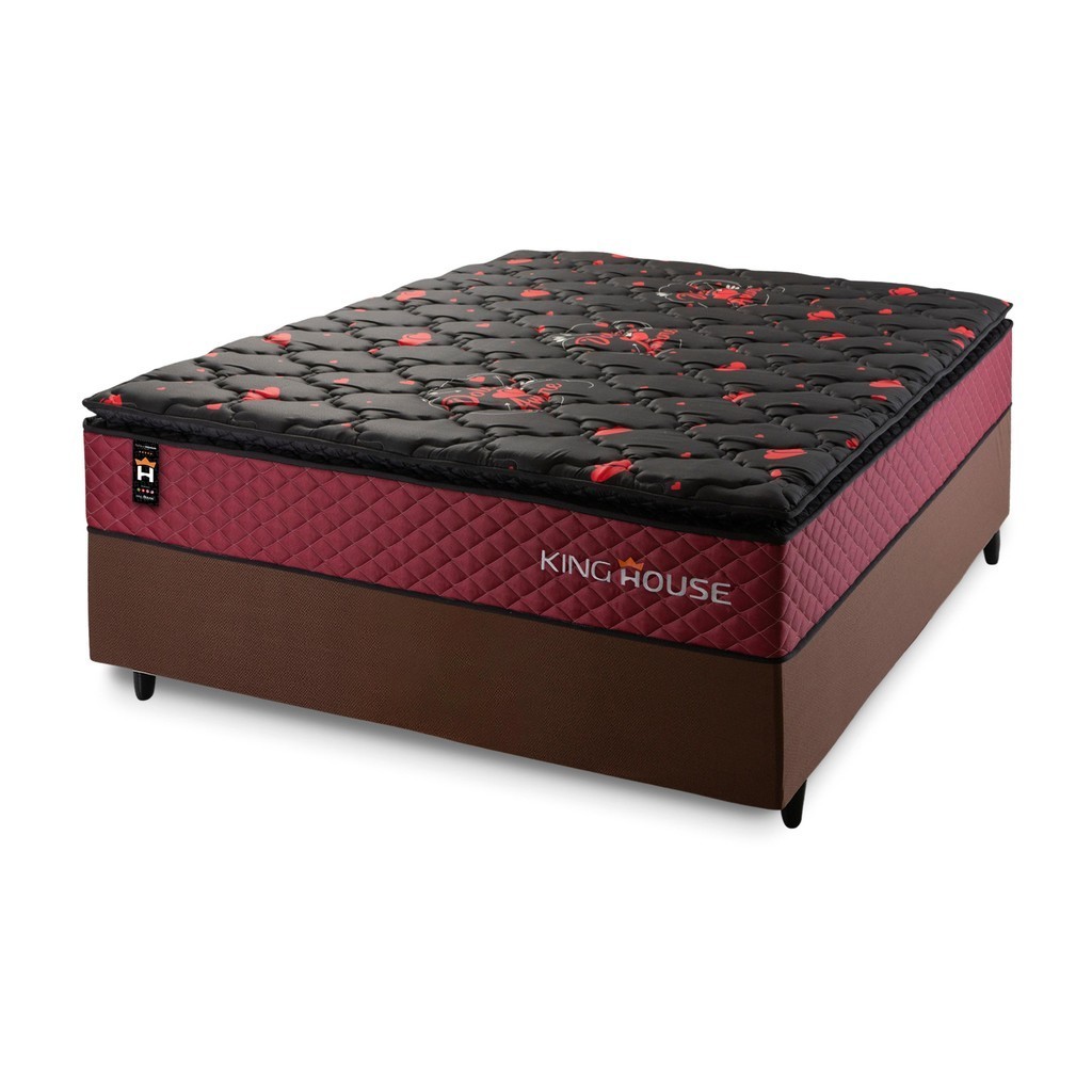 Conjunto Cama Box c/ Molas Ensacadas Toronto Vermelho Casal 138x188x66