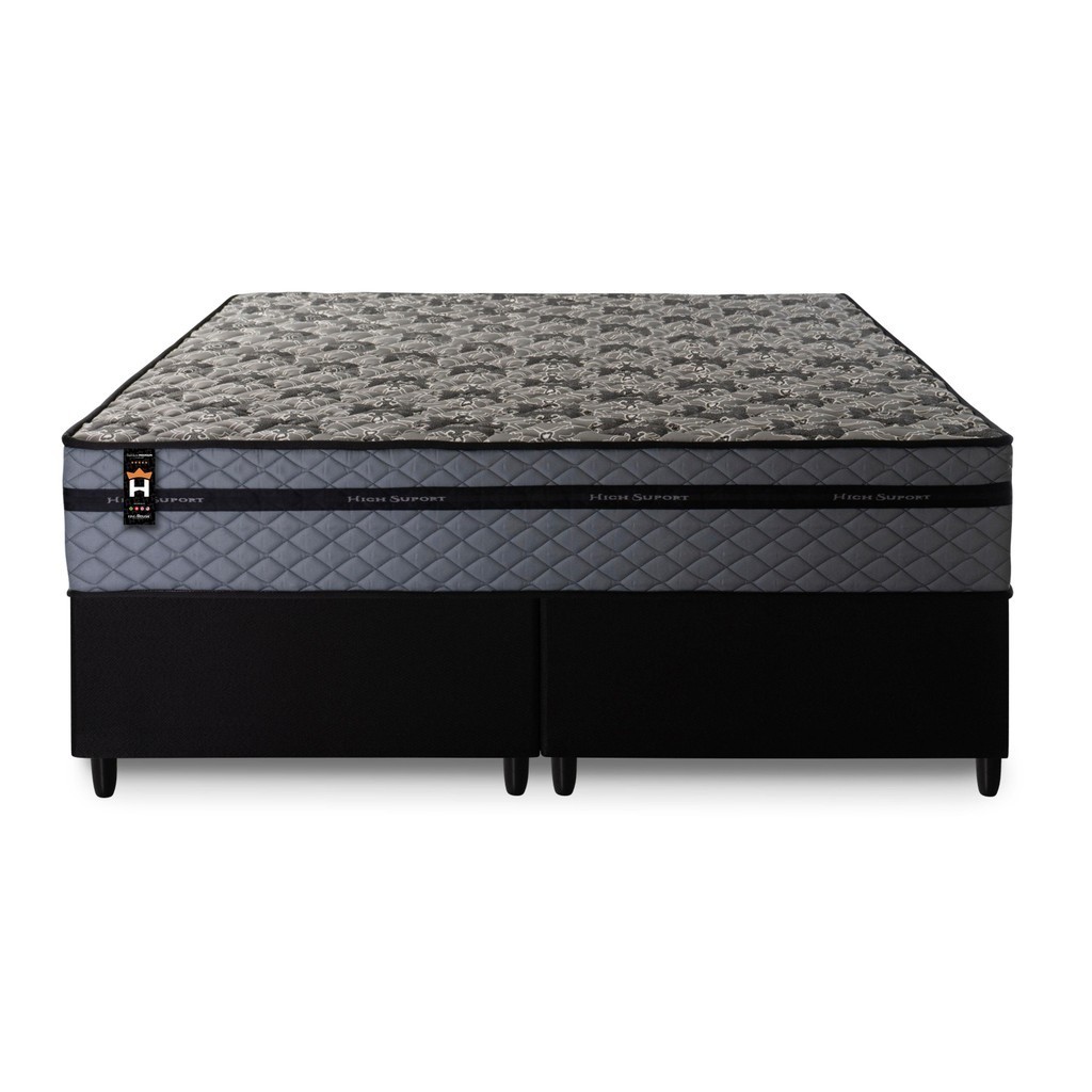Conjunto Cama Box c/ Molas Ensacadas Montreal Cinza Queen 158x198x64