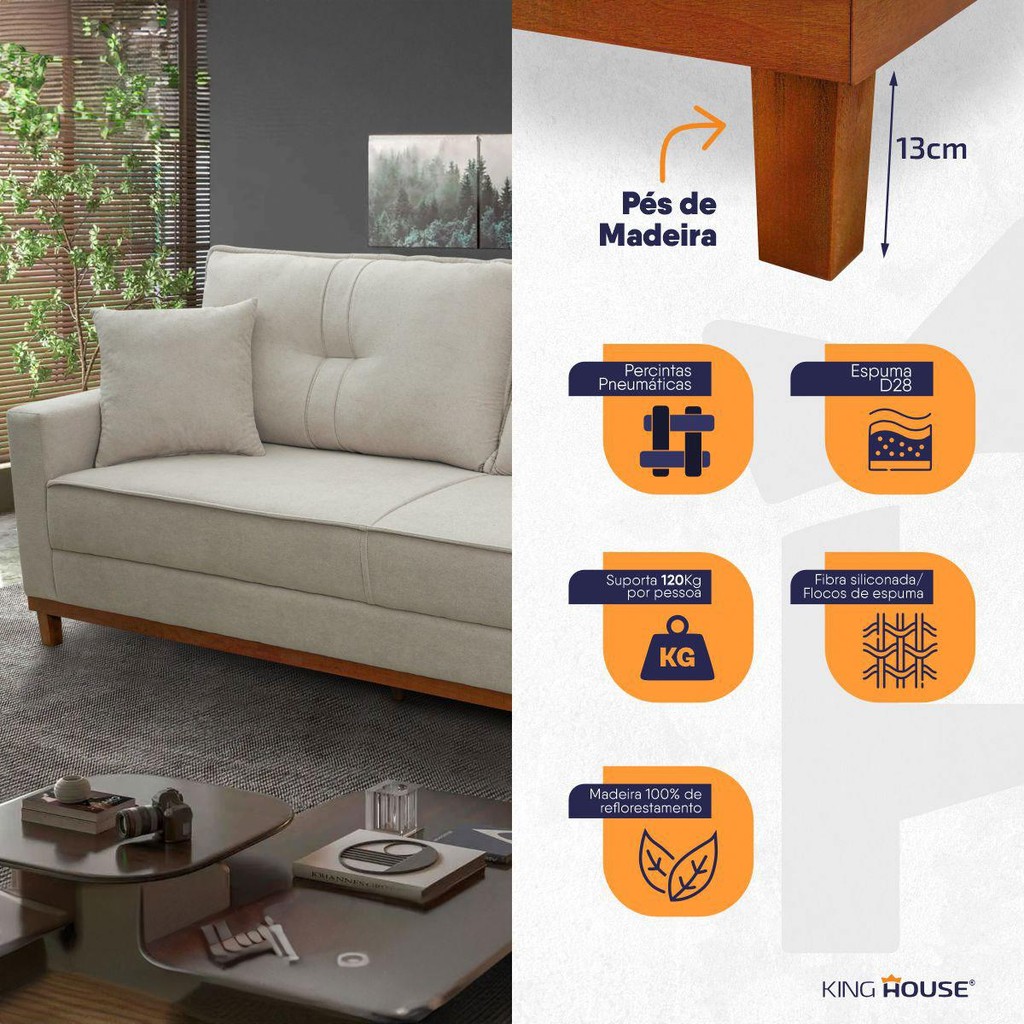 Sofá Living Malibu 2,00m Bege Bouclê - King House