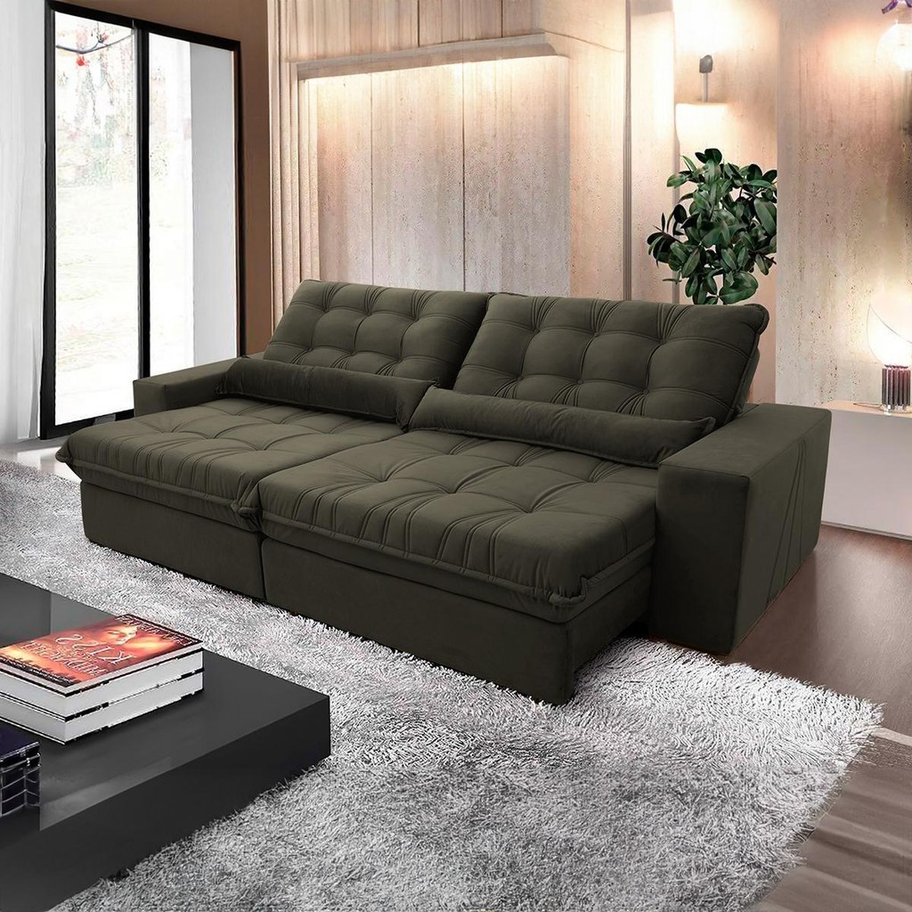 Sofá Retrátil Reclinável Zurique 2,70m Suede Velut Tabaco Molas no Assento - King House