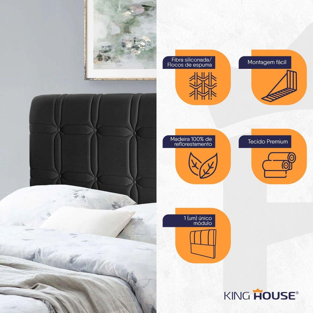 Cabeceira Cama Box Casal 140cm Suede Velut Preto - King House