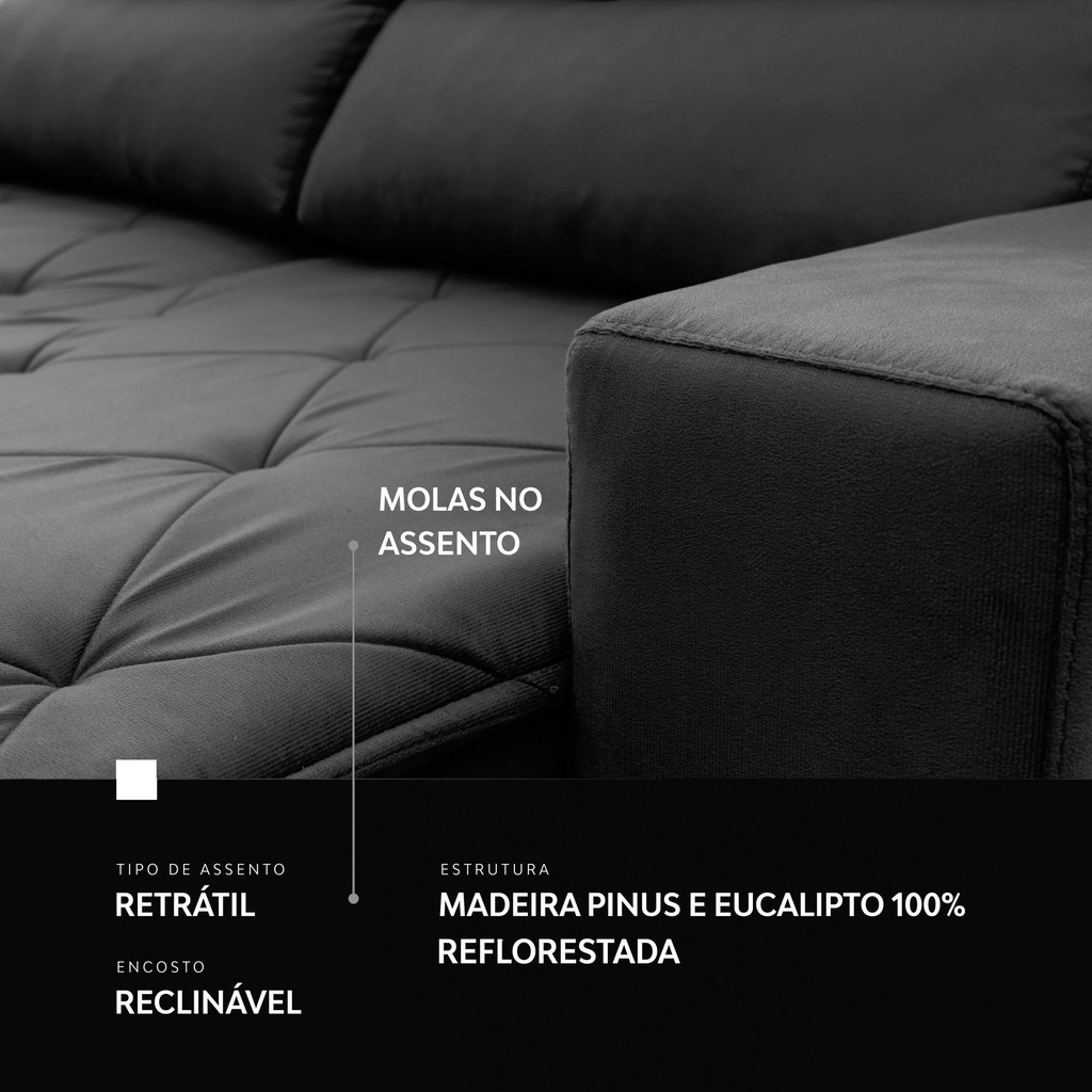 Sofá Retrátil Reclinável Belga 2,00m Suede Velut Cinza Molas no Assento