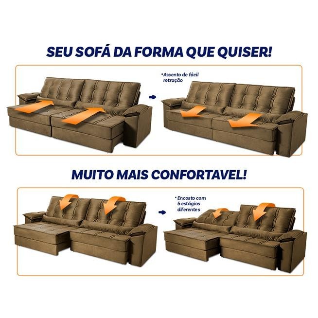Sofá Retrátil Reclinável 2,30m Ascari Suede Velut Bege molas Ensacadas - King House