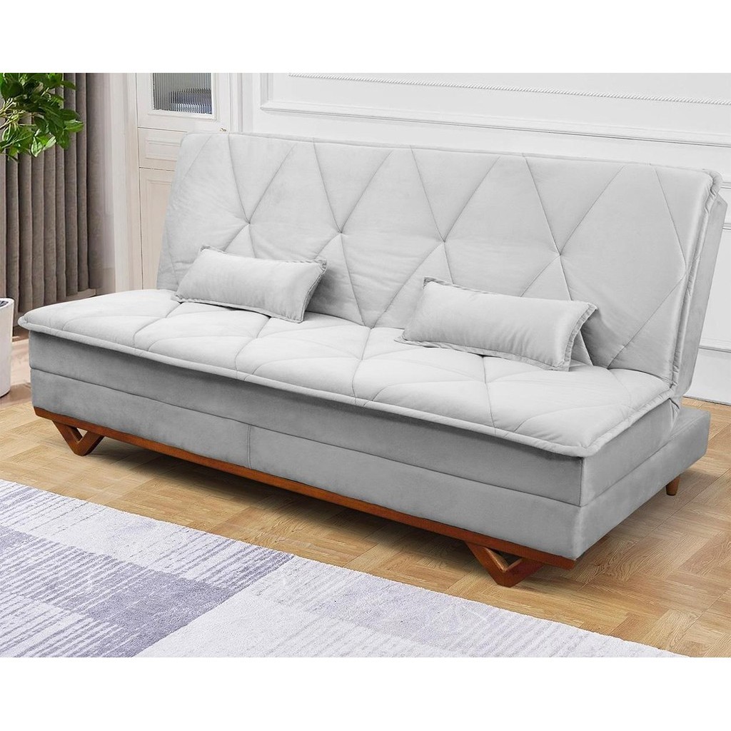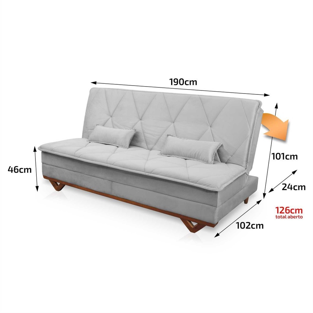 Sofá Cama Estoril 1,90m Cinza Suede Velut - King House