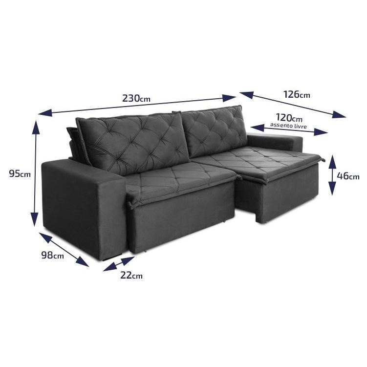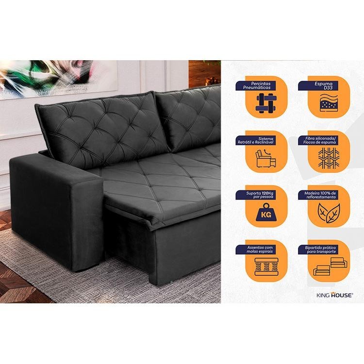 Sofá Cama Bangkok Sem Caixa 2,30m Retrátil e Reclinável Com Molas Velut Cinza- King House