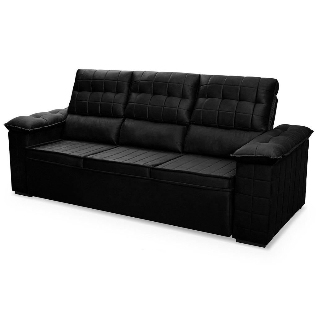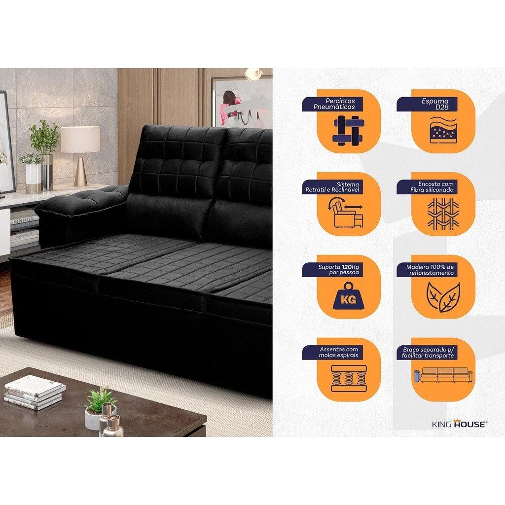 Sofá Retrátil Reclinável 4 lugares 2,30m Quantum Suede Velut Preto - King House