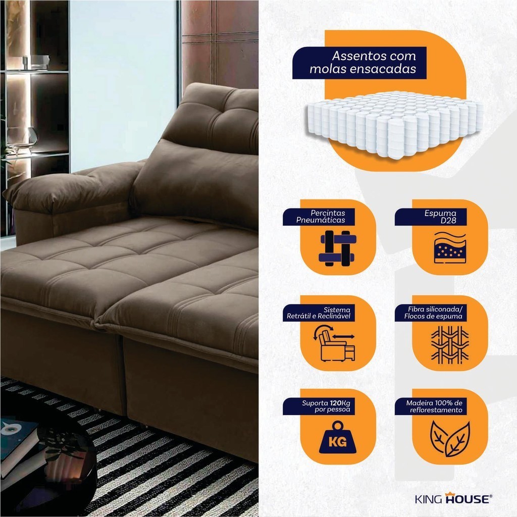 Sofá Retrátil Reclinável Verona 2,00m Suede Velut Tabaco Molas Ensacadas - King House
