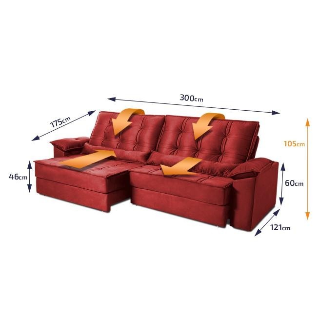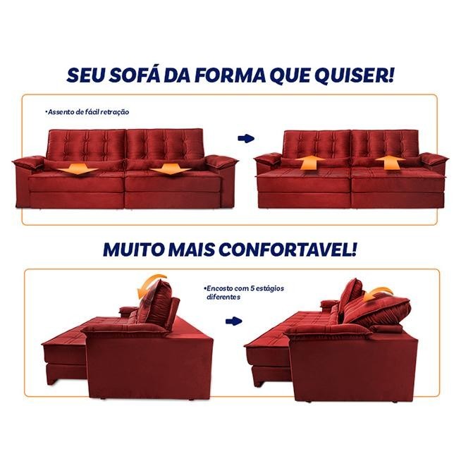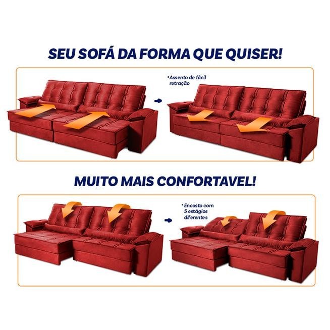 Sofá Retrátil Reclinável 3,00m Ascari Suede Velut Vermelho molas Ensacadas - King House