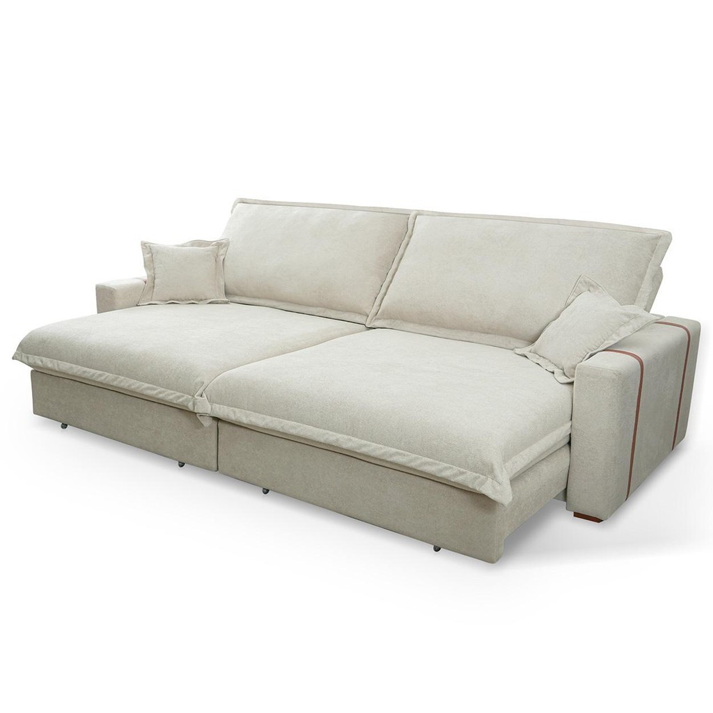 Sofá Retrátil Reclinável Nairobi 2,38m Bege Bouclê
