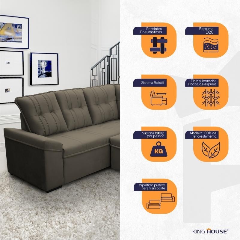Sofá Canto London Tabaco Suede Velut - King House